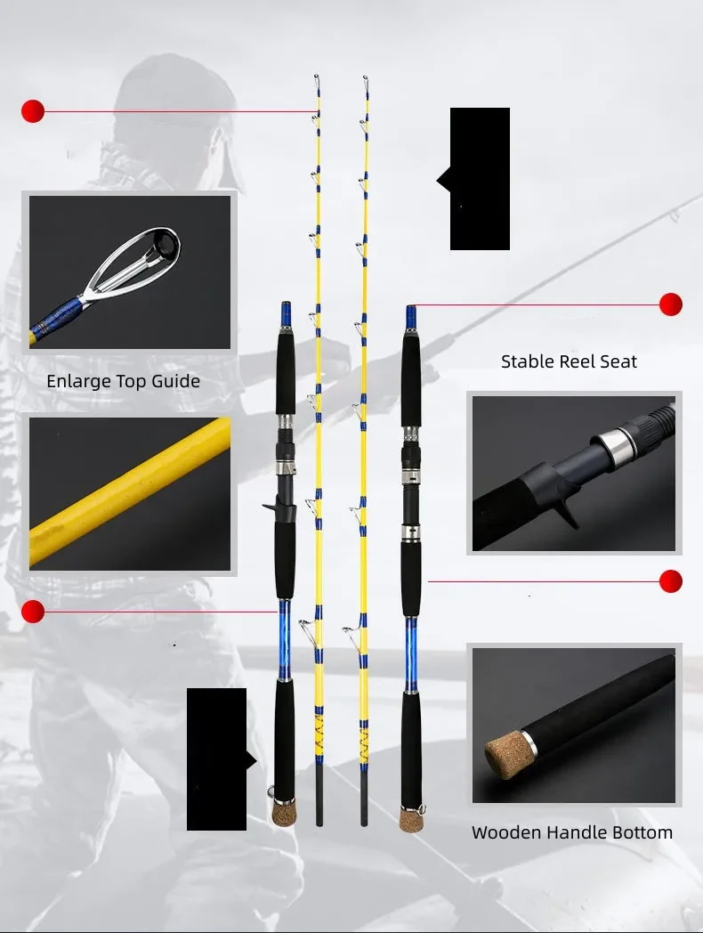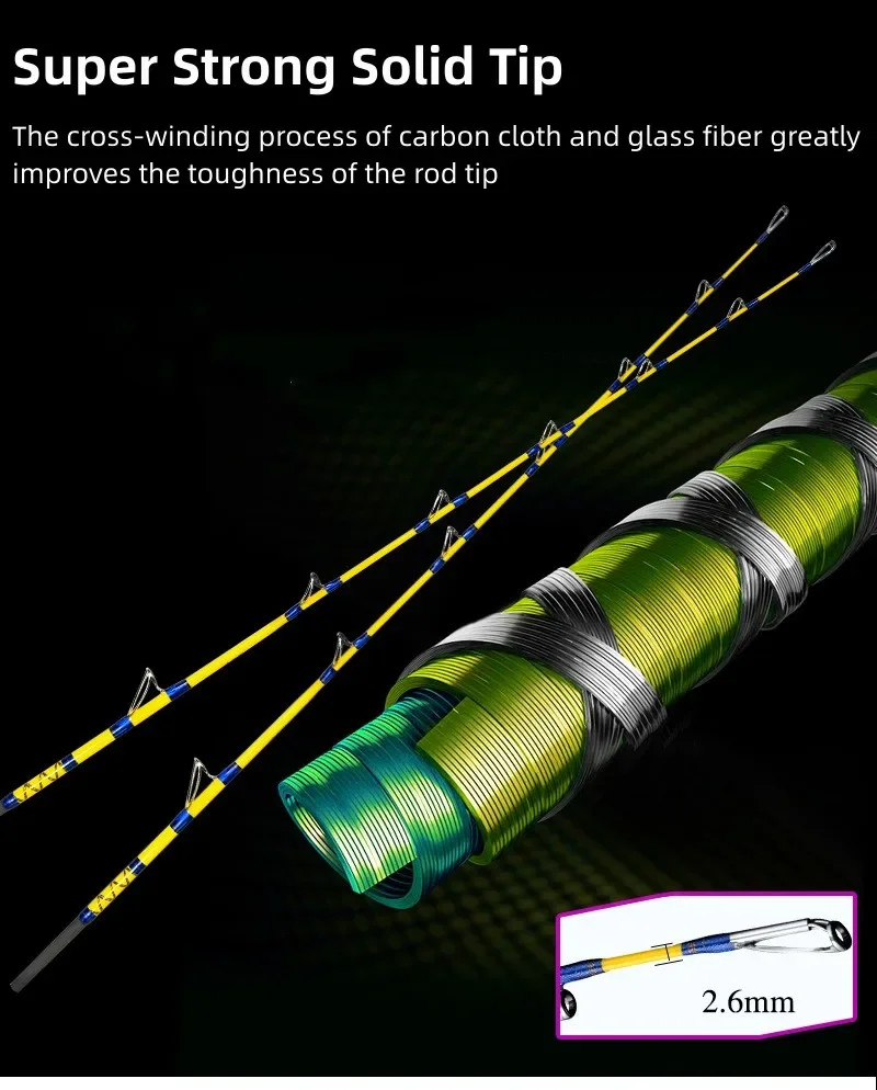 Longitud: 1,6 m|Peso: 250 g|Peso del señuelo: 100-300 g|Peso de la línea: 30-50 libras|Acción: Media|Potencia: MH|Diámetro superior: 2,02 mm|Sección: 2| Diámetro inferior: 10,4 mm