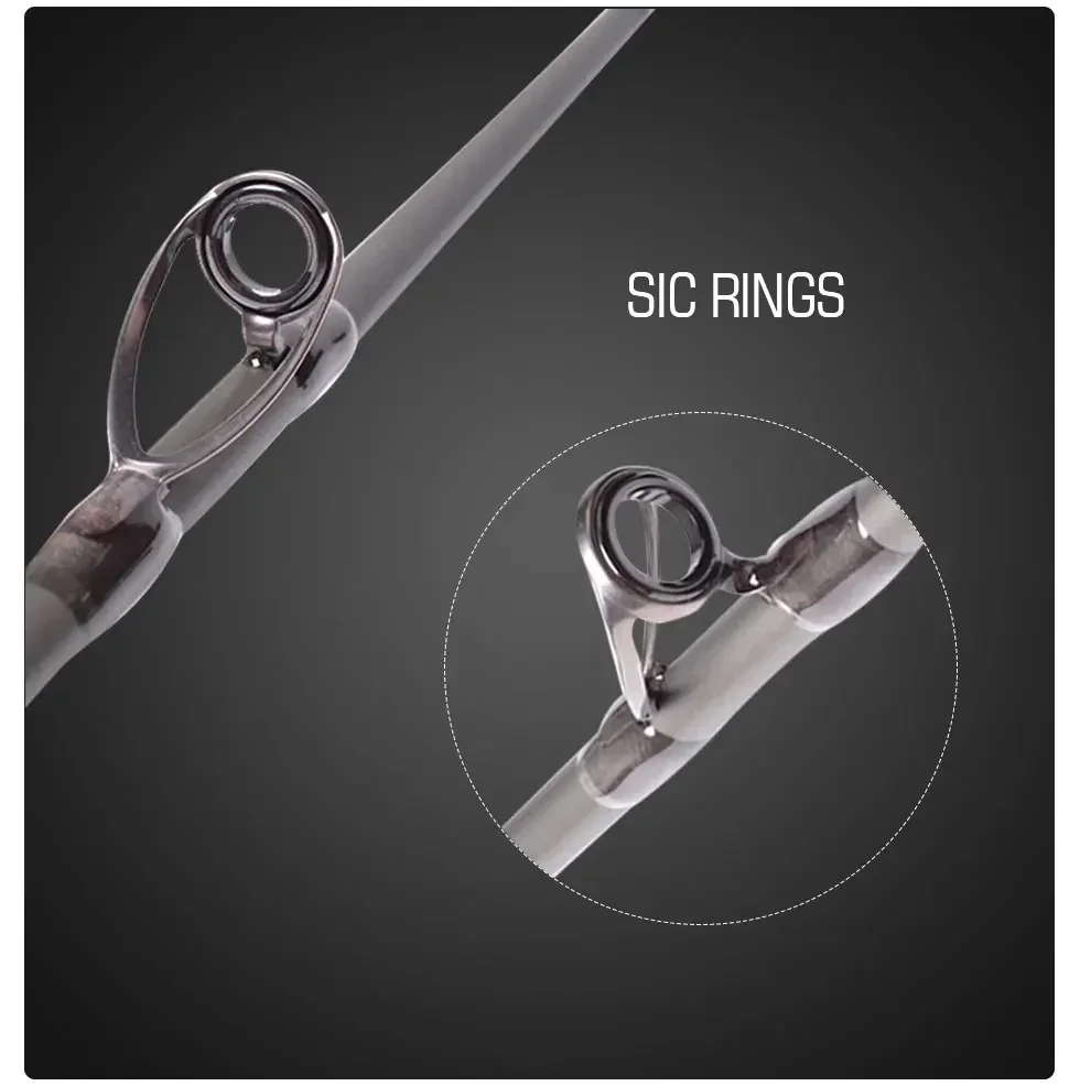 Punta X-cross-Esta caña está equipada con una punta de fuerza, melodía MH, que puede soportar un peso de señuelo de 80-250 g.