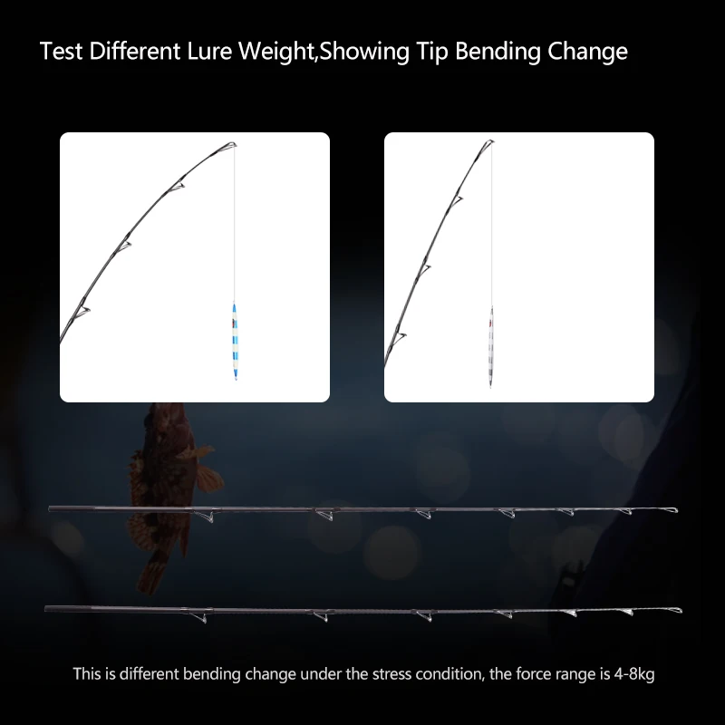 Longitud: 1,8 m|Longitud cerrada: 95cm|Peso: 208G|Peso del señuelo (hueco/sólido): 80-250g|Peso de la línea: 20-50lb|Acción: Rápido|Potencia: MH|Diámetro inferior: 12,75mm|Diámetro superior: 2,2mm|Sección: 2|