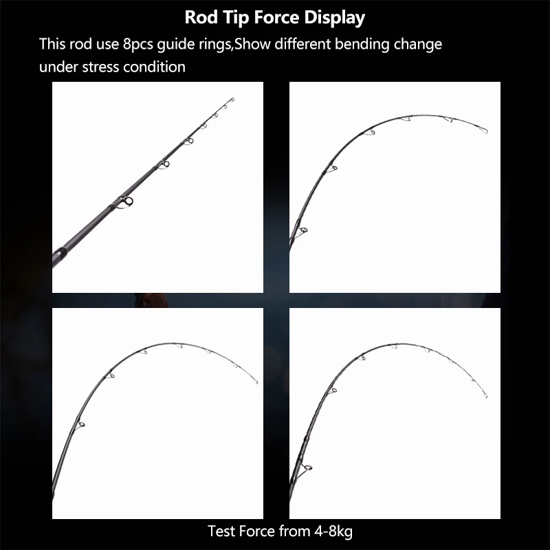 Longitud: 1,8 m|Longitud cerrada: 95cm|Peso: 194G|Peso del señuelo (hueco/sólido): 80-250g|Peso de la línea: 20-50lb|Acción: Rápido|Potencia: MH|Diámetro inferior: 12,75mm|Diámetro superior: 2,2mm|Sección: 2|