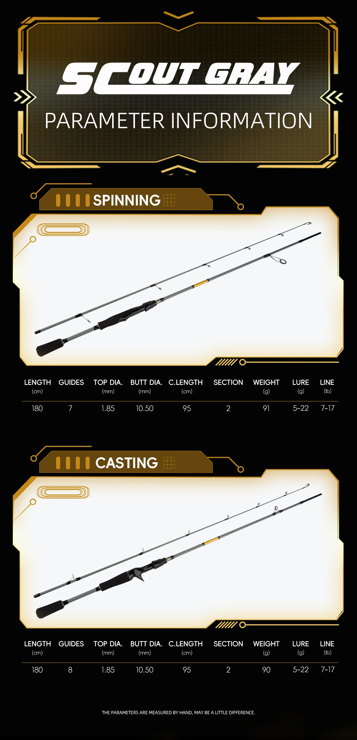 Rod simple diseñada y parámetro estándar.El diseño de cuerpo verde + la etiqueta de varilla negra nunca pasará de moda.Disfrute de la pesca con los parámetros estándar de caña ultraligera.