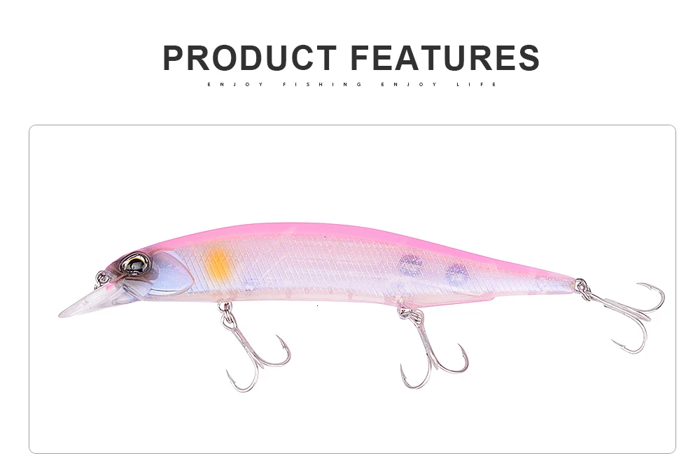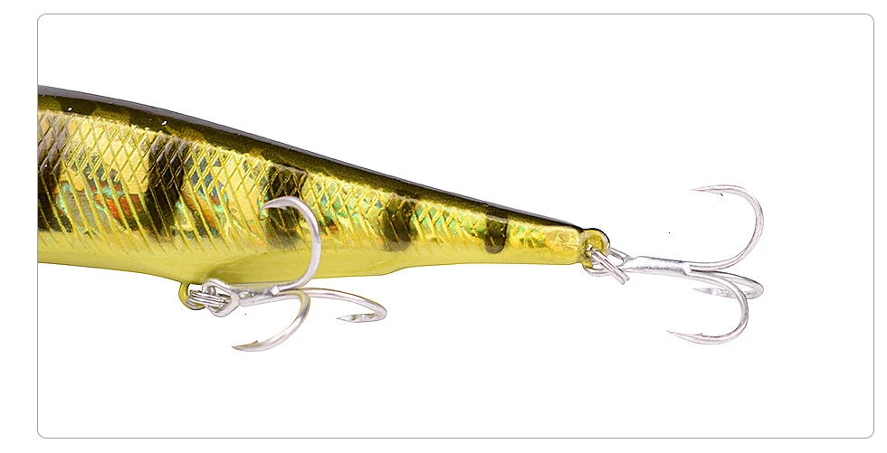 Este señuelo equipado con tres anzuelos triples afilados de alta calidad, adecuado para todas las posiciones.