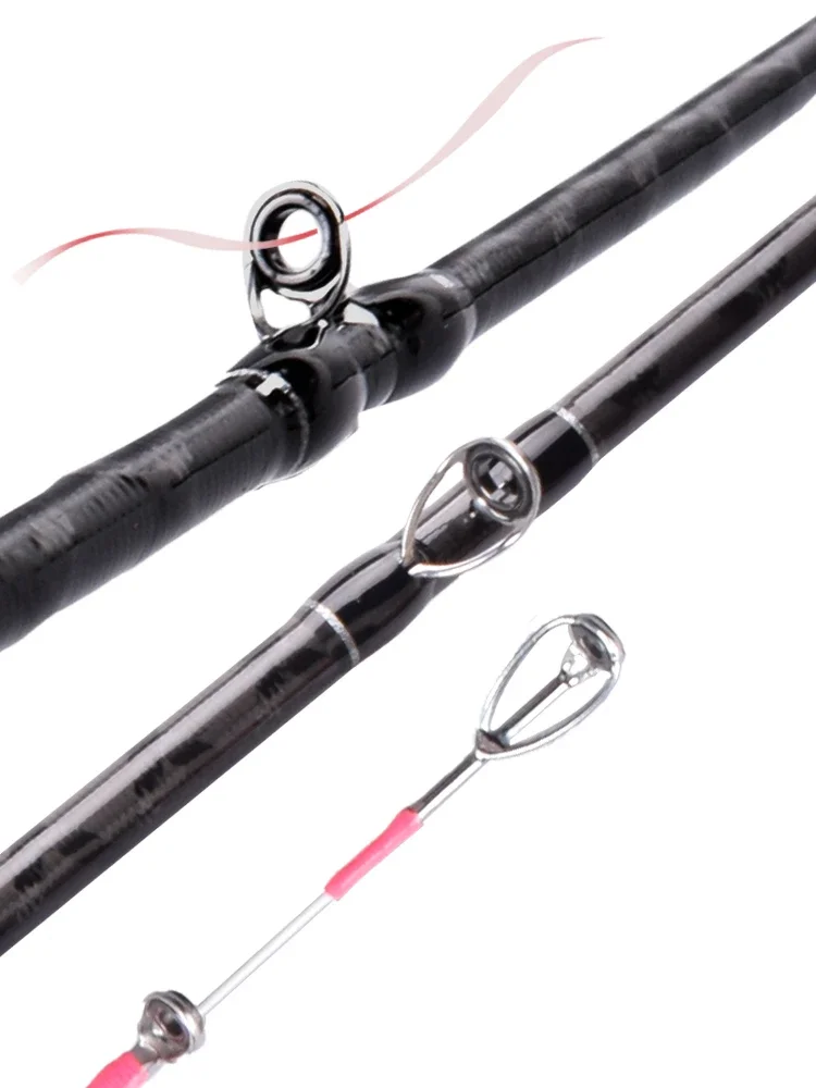 4. Esta caña tiene acción rápida y puede soportar entre 12 y 25 libras, y el peso del señuelo es de 60 y 120 g.