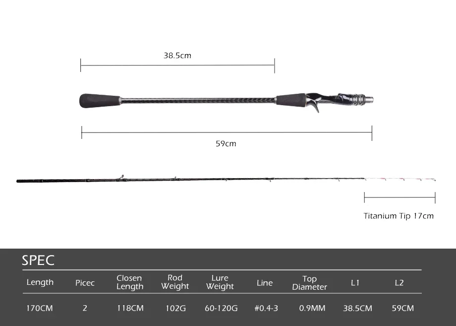 1.La varilla está hecha de carbono Toray 40T, el peso total de la varilla es de 106 g, sensación de mango ultraligero