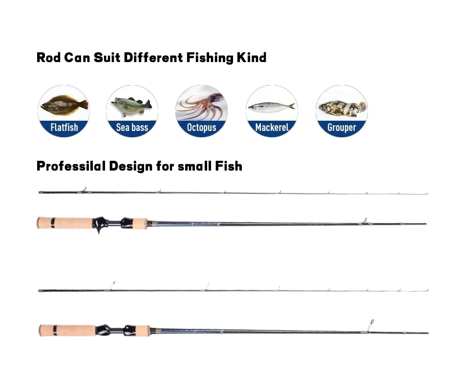 Caña ultraligera, el peso es de solo 68 g a 73 g, fácil de transportar, adecuada para pescar peces pequeños, los amigos pescadores no se cansan después de largas horas de pesca.