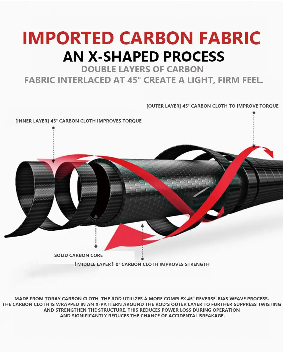 Dobles capas de tejido de carbono entrelazadas en 45 ° Crea una sensación ligera y firme.
