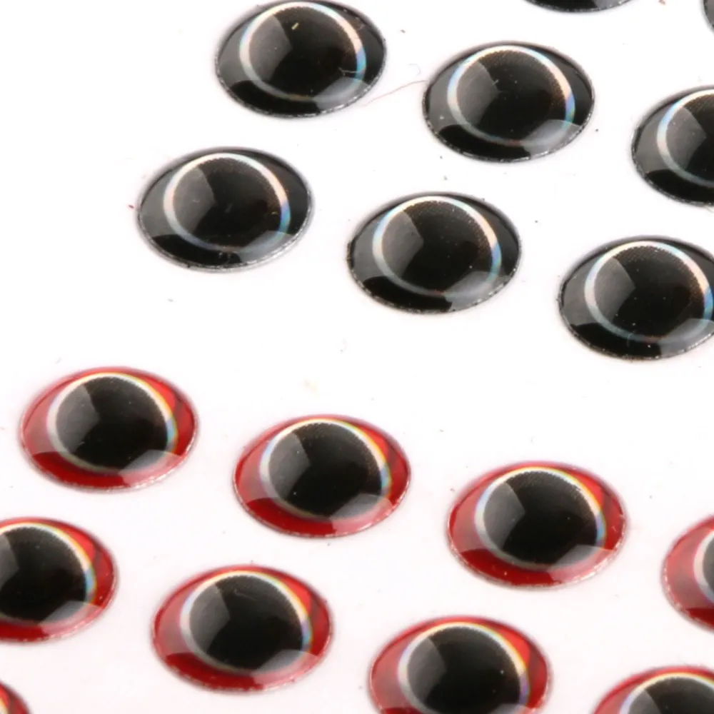 Estos ojos no son los ojos planos de papel, son moldeados en 2D suaves con pupilas de lágrima negras y adhesivo en la parte posterior para pegar en una variedad de señuelos de pesca, moscas, jigs e incluso manualidades. Puede hacer que tu señuelo sea más interesante, te encantará.