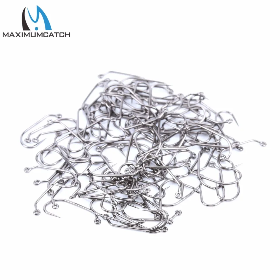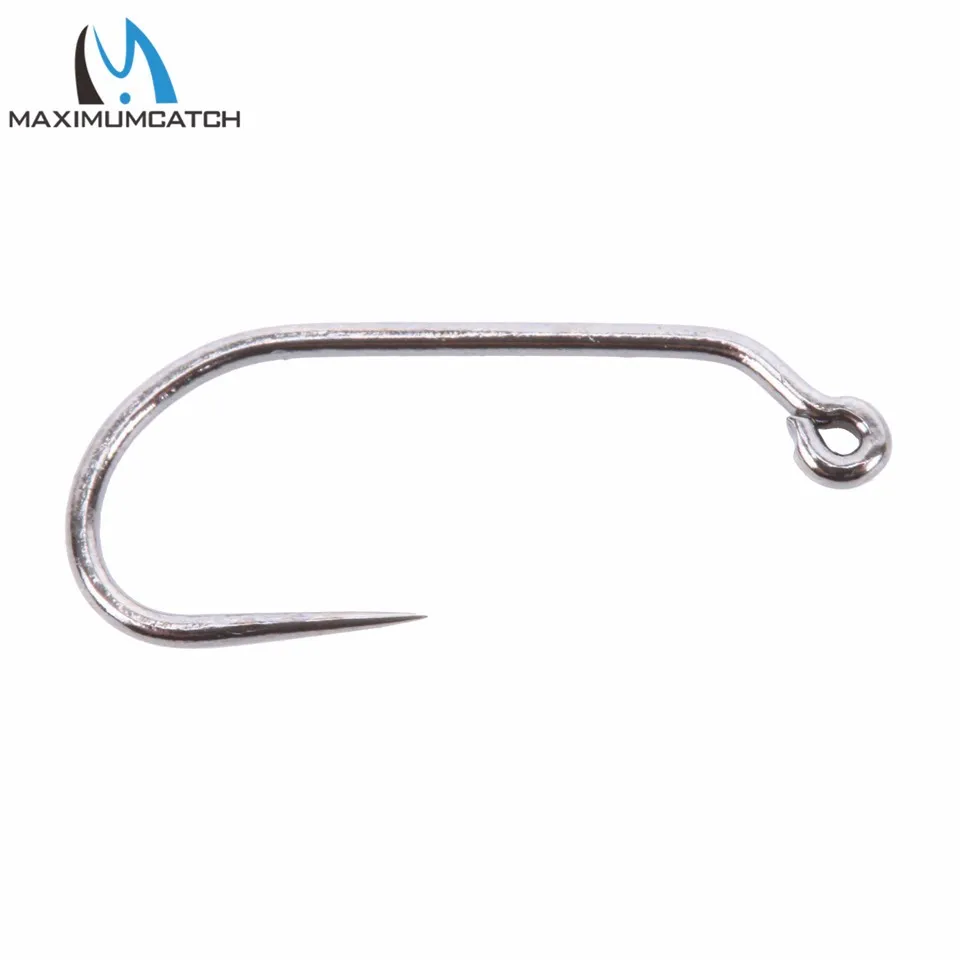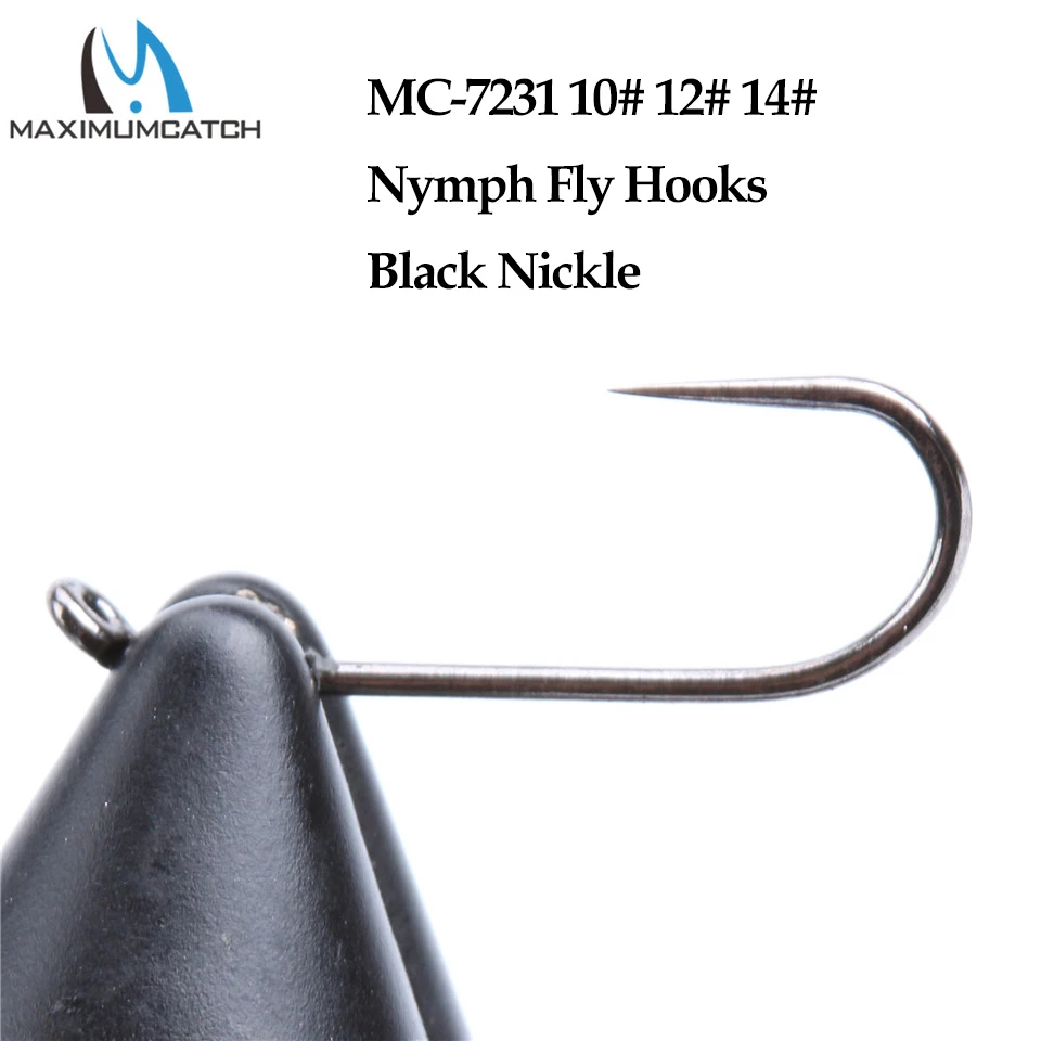 Captura máxima 100 piezas 10#-18# Anzuelos de pesca con mosca sin púas aptos para peces, secos, húmedos, ninfas y camarones, Caddis Pupa y plantilla