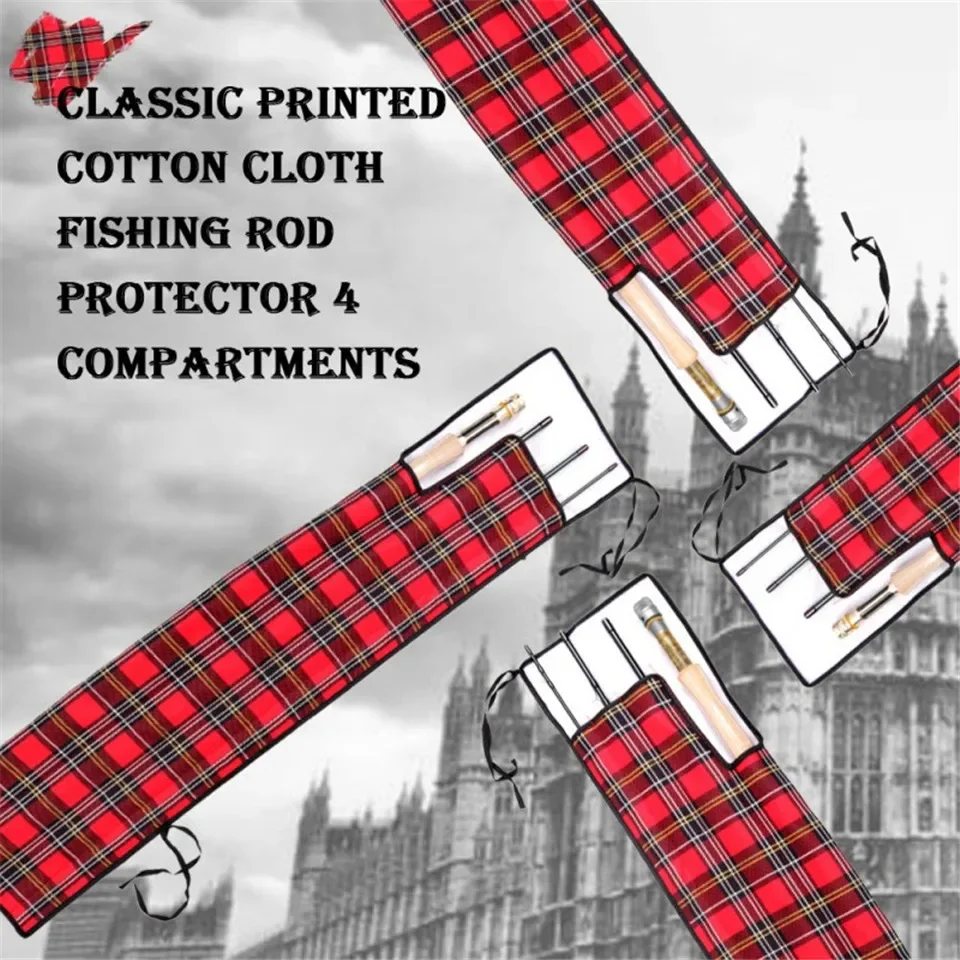 Bolsa para caña de pescar con mosca Maximumcatch, calcetín para caña de pescar de tela de algodón grueso con estampado clásico para caña de pescar de 9 pies y 4 Uds.