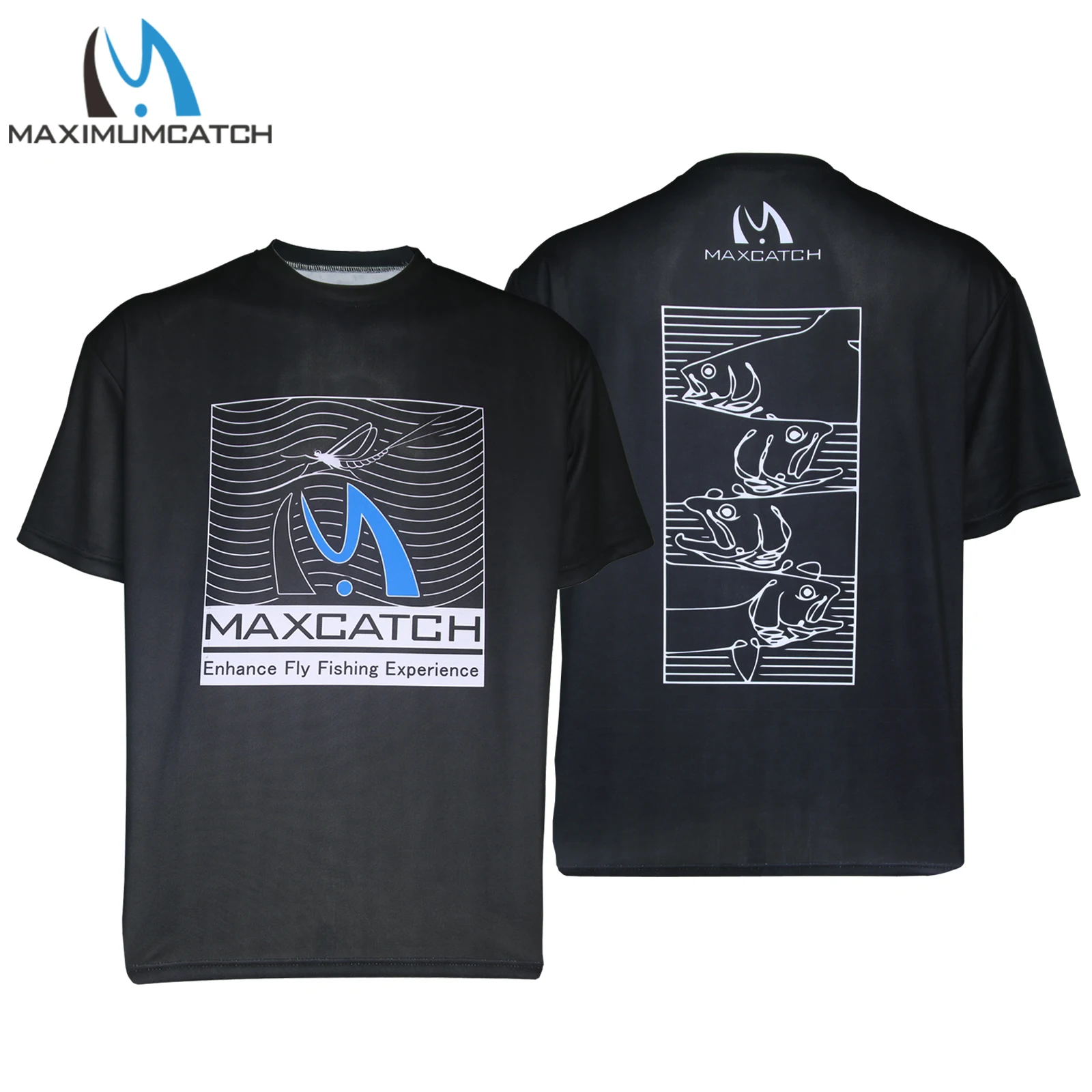 Maximumcatch-Camiseta de pesca con mosca para hombre, camisa informal con cuello redondo, básica, color negro, talla M/L/XL, 100% algodón
