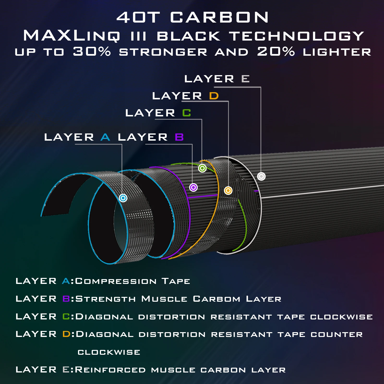-Nueva tecnología de cinco capas para hacer la varilla hasta un 30% más fuerte y 20% más ligera