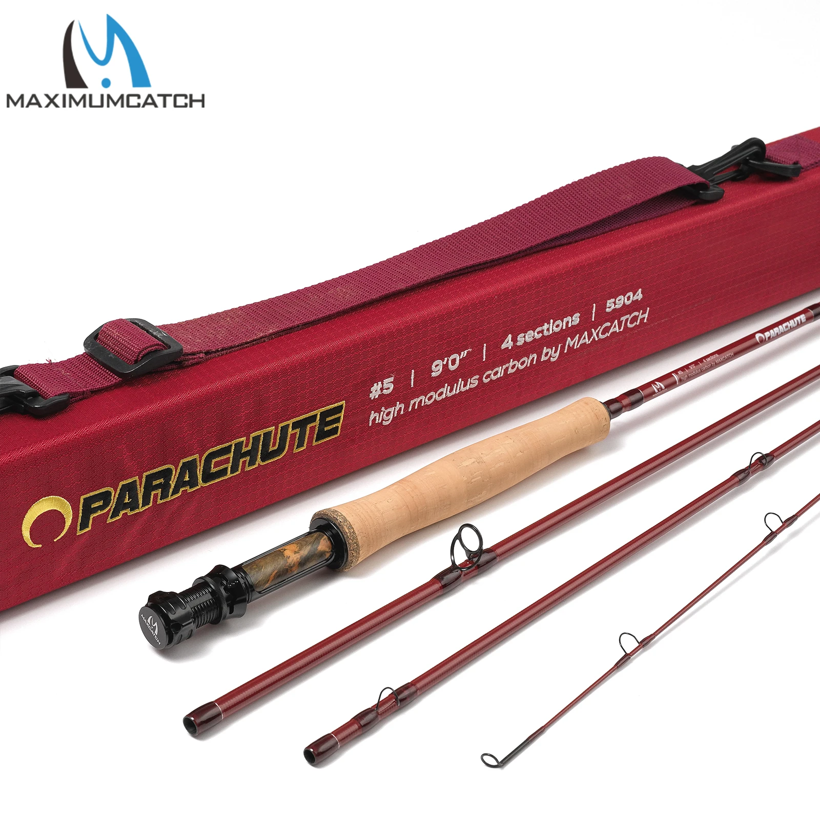 Maximumcatch paracaídas de alto grado 9 pies 5/6/8wt 4PC IM12/40T fibra de carbono súper ligera caña de pescar con mosca de acción rápida