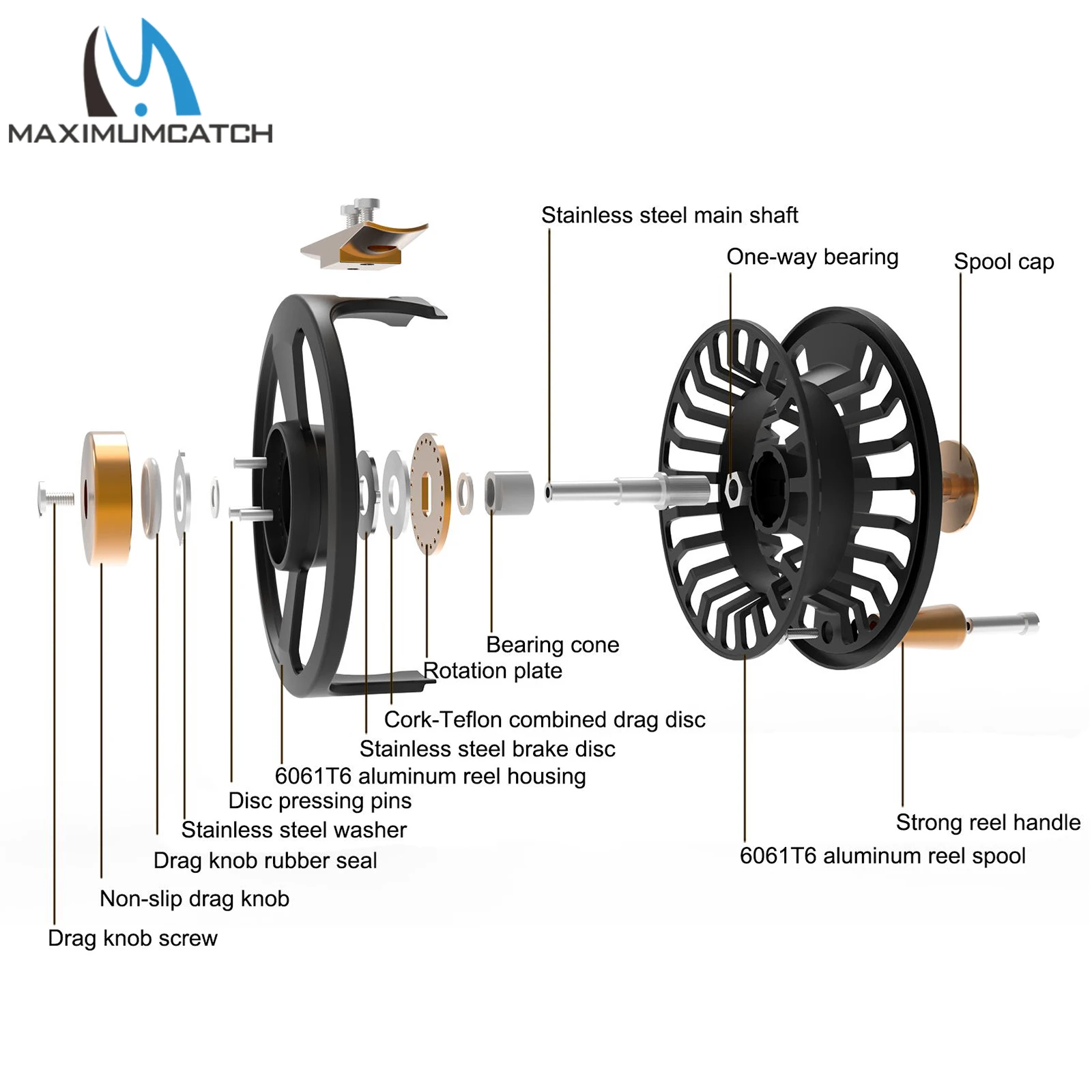 Maximumcatch-Carrete de mosca negro, disco mecanizado CNC superligero y grande
