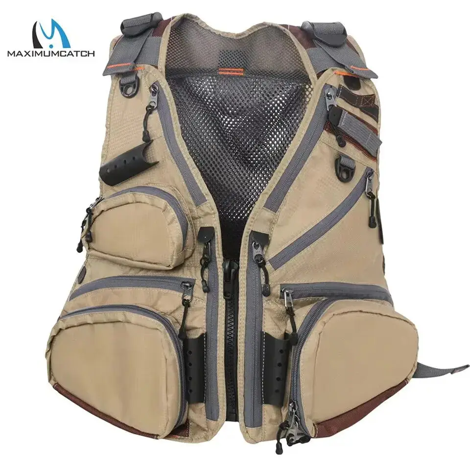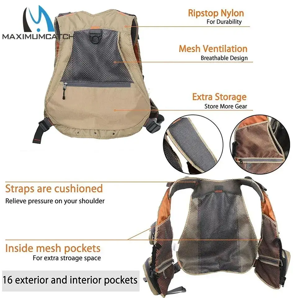 Paquete de chaleco de pesca con mosca Maximumcatch, chaleco de malla ajustable, chaqueta, bolsillo multifunción para exteriores