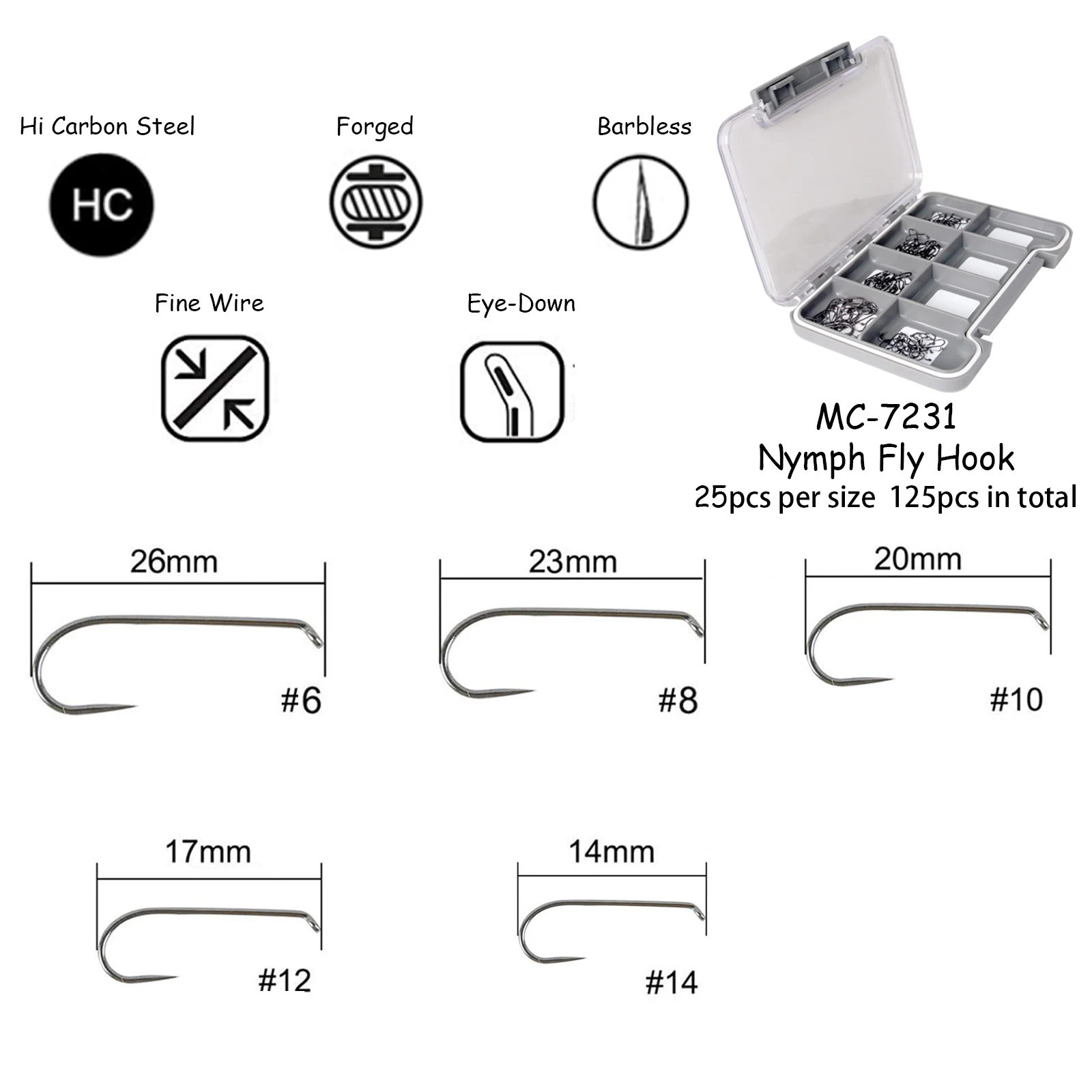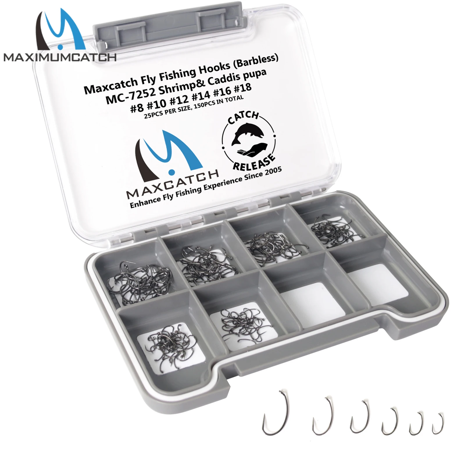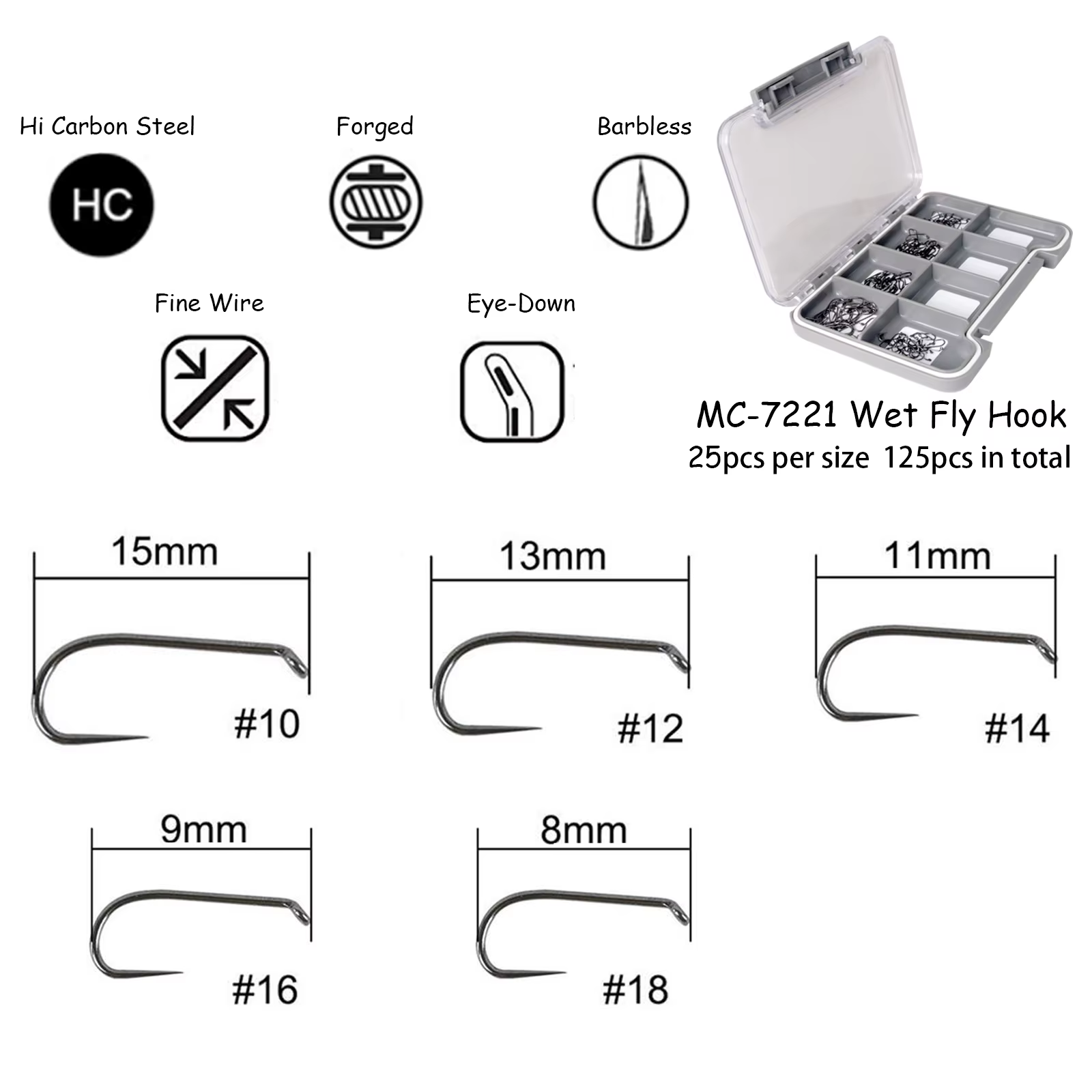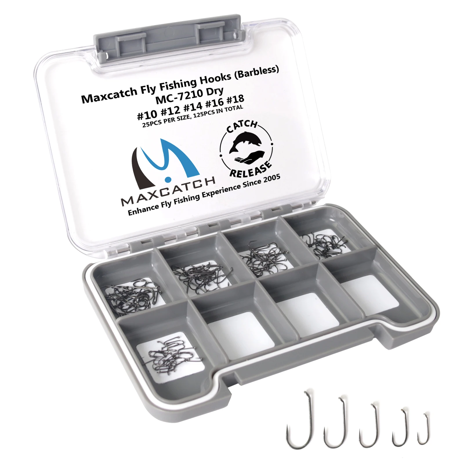 Captura máxima 125 piezas 6#8#10#12#14#16#18# Juego de ganchos para atar moscas
