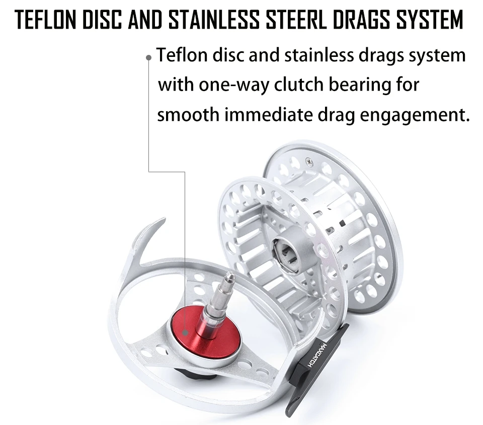 *****MALINETE PARA FLY DE ALUMINIO precargado: se incluye un carrete para mosca liviano de aluminio con un sistema de arrastre de disco extremadamente suave.El carrete está preenrollado con respaldo, hilo de mosca flotante hacia adelante y líder cónico.El tamaño del carrete coincide con cada varilla de peso de línea para un equilibrio perfecto en consecuencia.