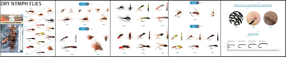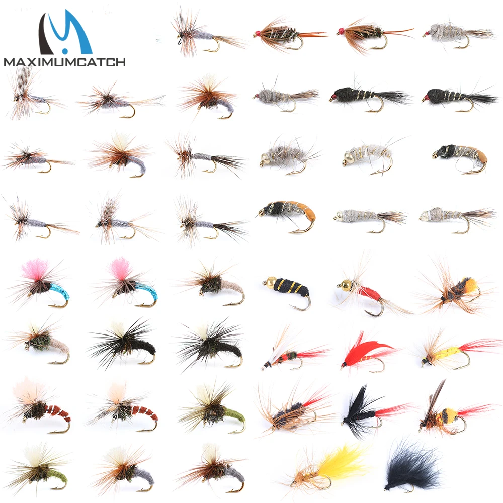 Maximumcatch-Juego de moscas para pesca con mosca, serpentina, ninfa seca, trucha, moscas húmedas # 2- # 14 Señuelos de Pesca Aparejos de Pesca