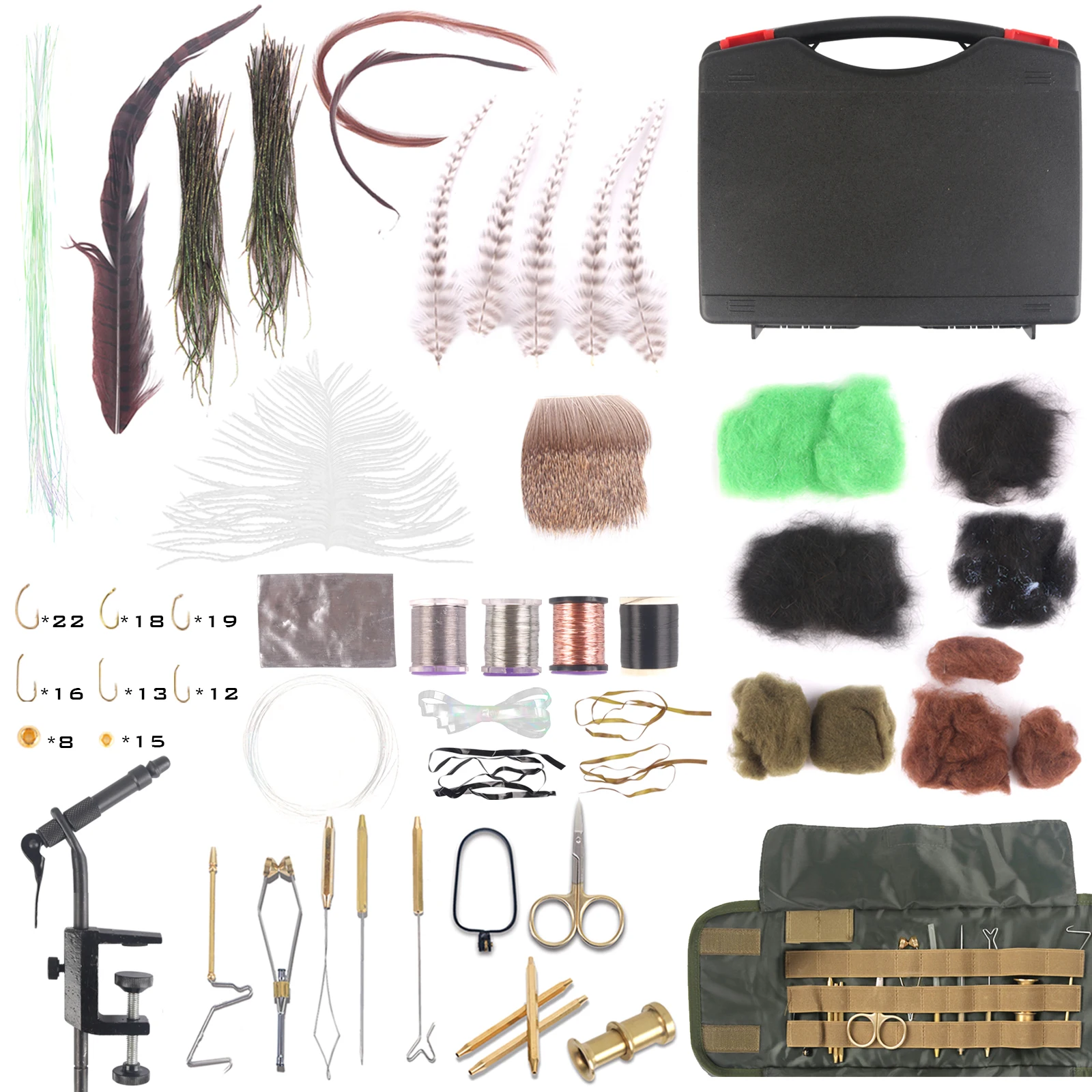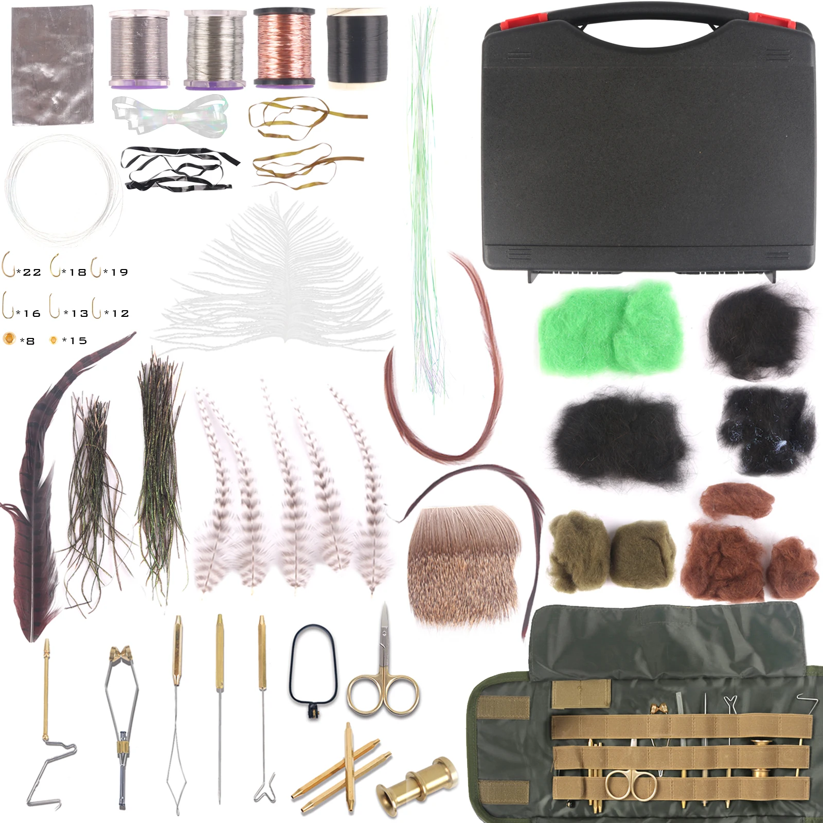 Maximumcatch Kit de atado de moscas con caja de plumas naturales y doblaje y ganchos y cuentas y herramientas DIY que hace materiales de atado