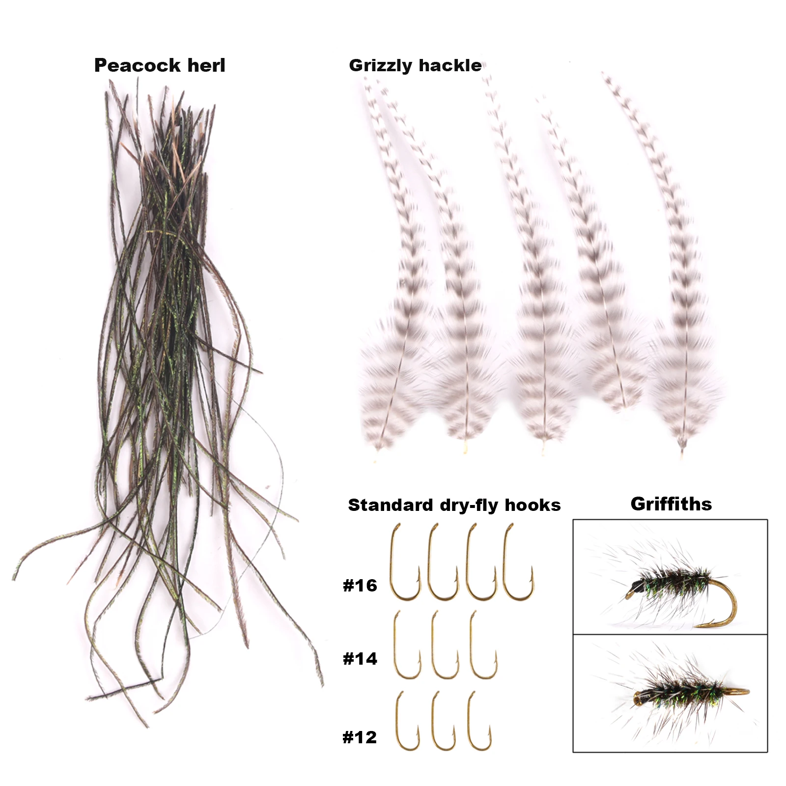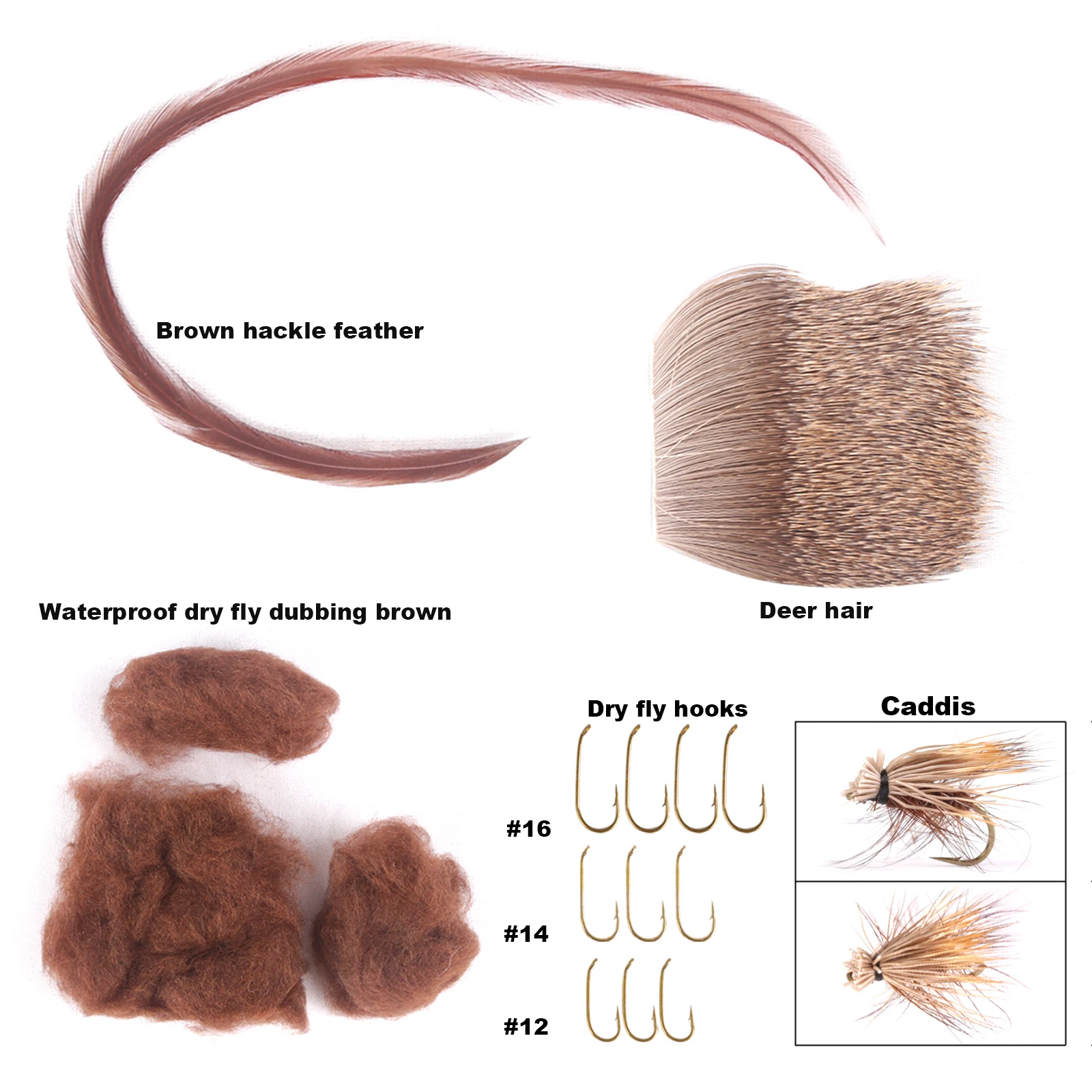 -- Pluma natural, doblaje de colores, piel de Ninfa, pelo de ciervo, Grizzly hackle y Peacock Herl están incluidos en el kit completo. Pueden crear una espalda realista y un brillo atractivo bajo el agua.