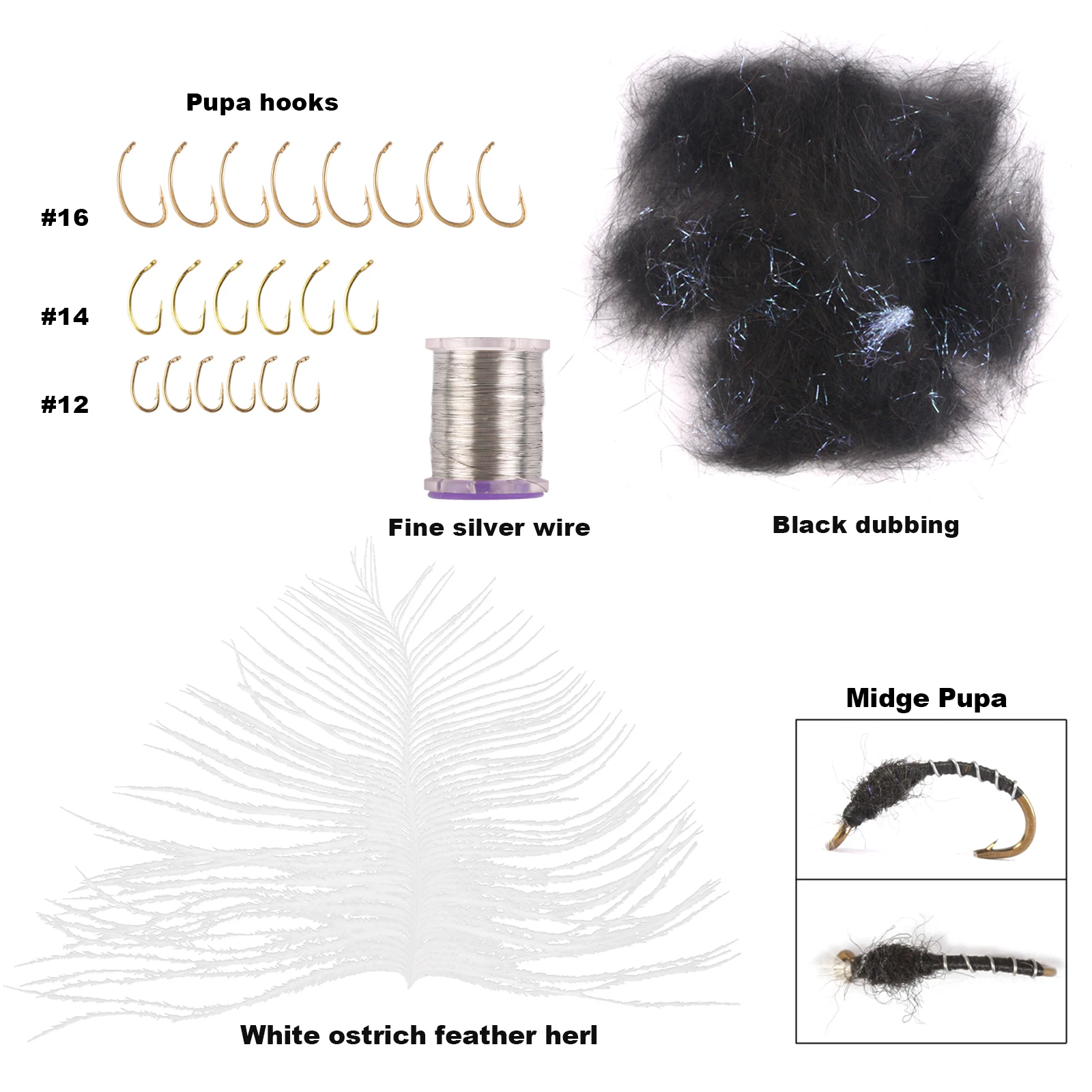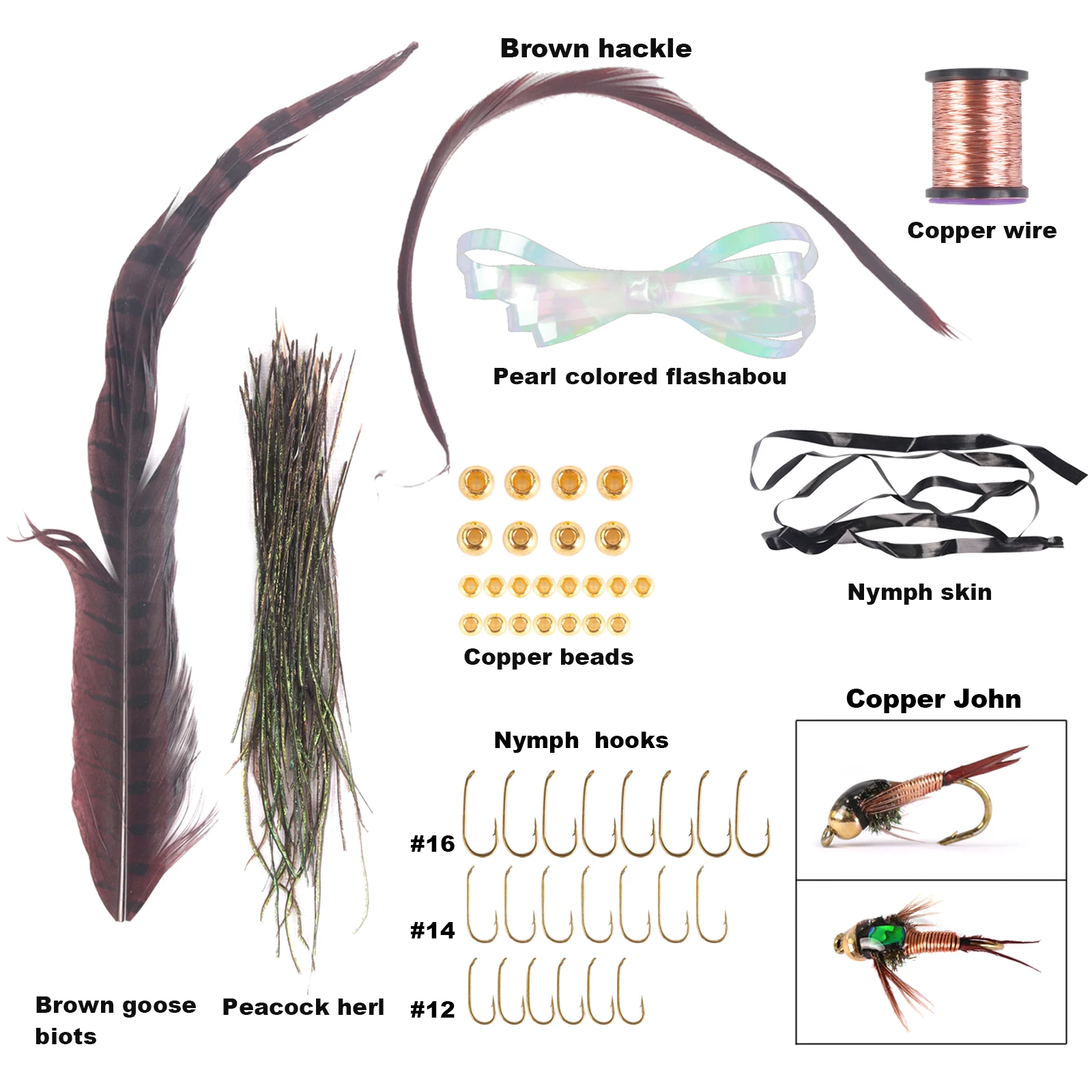 -- Los ganchos de tamaño 12, 14 y 16 cubren la mayoría de los tamaños de mosca. -- Alambre de cobre, alambre de plata y línea tippet se pueden utilizar para construir la parte inferior de la carrocería.