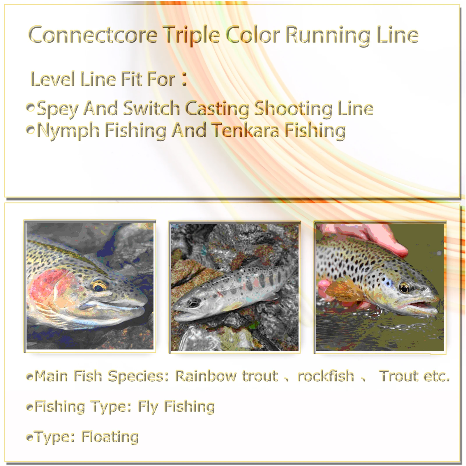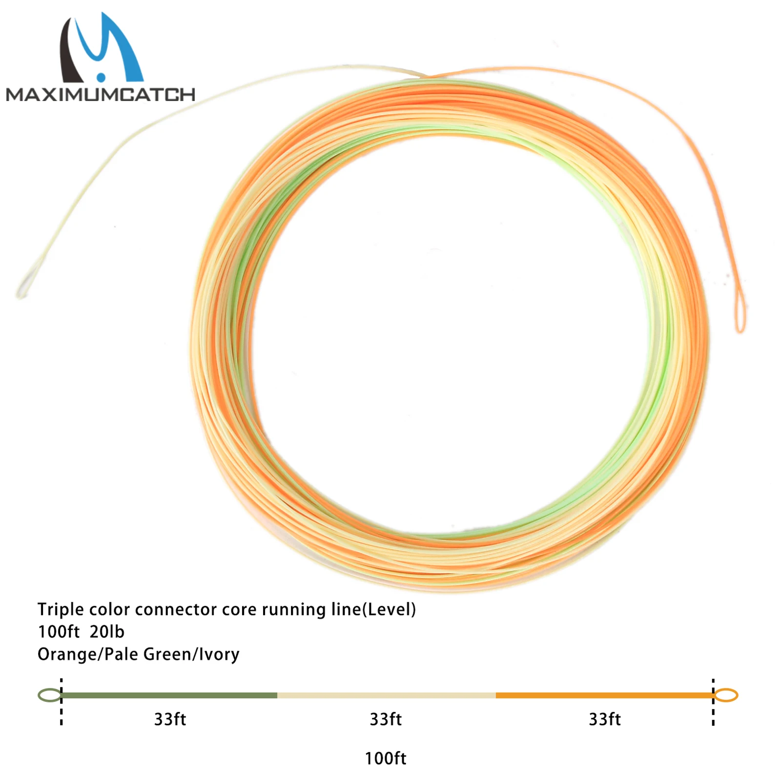Maximumcatch Triple Color ConnectorCore Running Line 100ft 20lb Nivel Shooting Line Nymph Tenkara Line