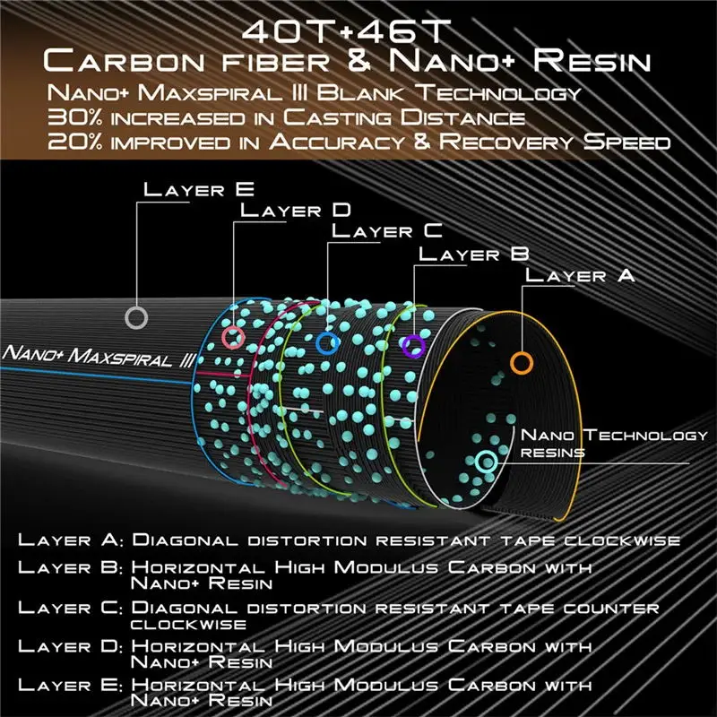 ****NANO+ MAXSPIRAL BLANK TECHNOLOGY- Made of IM10 and IM12 Japanese Toray Carbon with Nano+ resin. Improved durability with reduced blank weight with the new Nano+ resin. The tip is a bit of stiffer,And the rod bends down to the halfway point. This is easy to cast the fly to desired spot. And the butt section has quite a good power in reverse, so it is comfortable to handle a bigger fish even though it is a very light 2wt or 3wt rod.