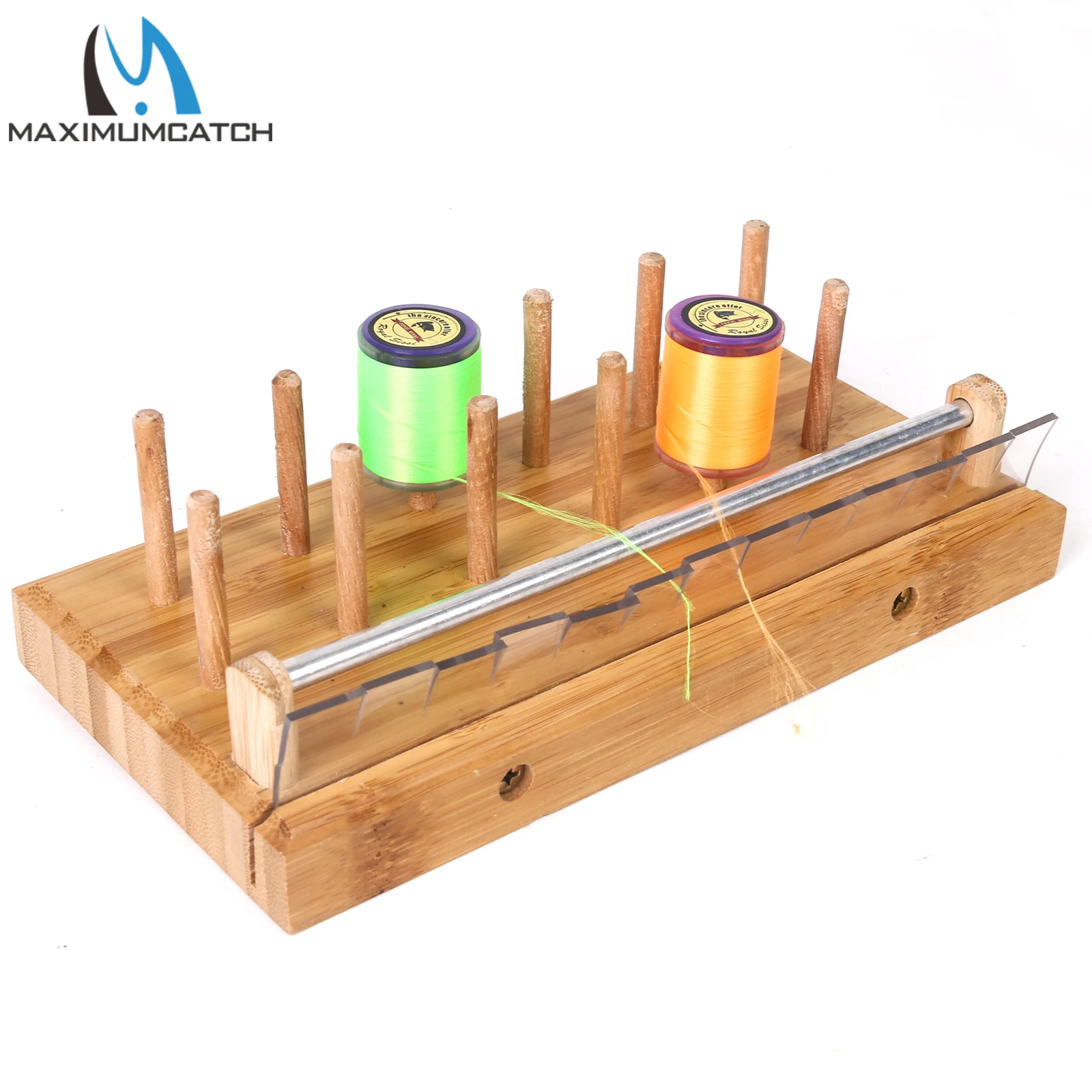 Maximumcatch Natural madera para atar moscas, carrete de hilo, soporte para atar costillas, estación de carrete, tornillo de banco hecho a mano
