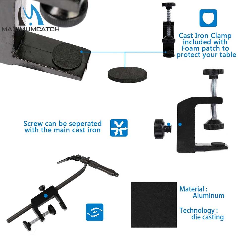 Maximumcatch-tornillo de hierro giratorio para atar moscas, Herramienta de gancho para moscas, Base resistente