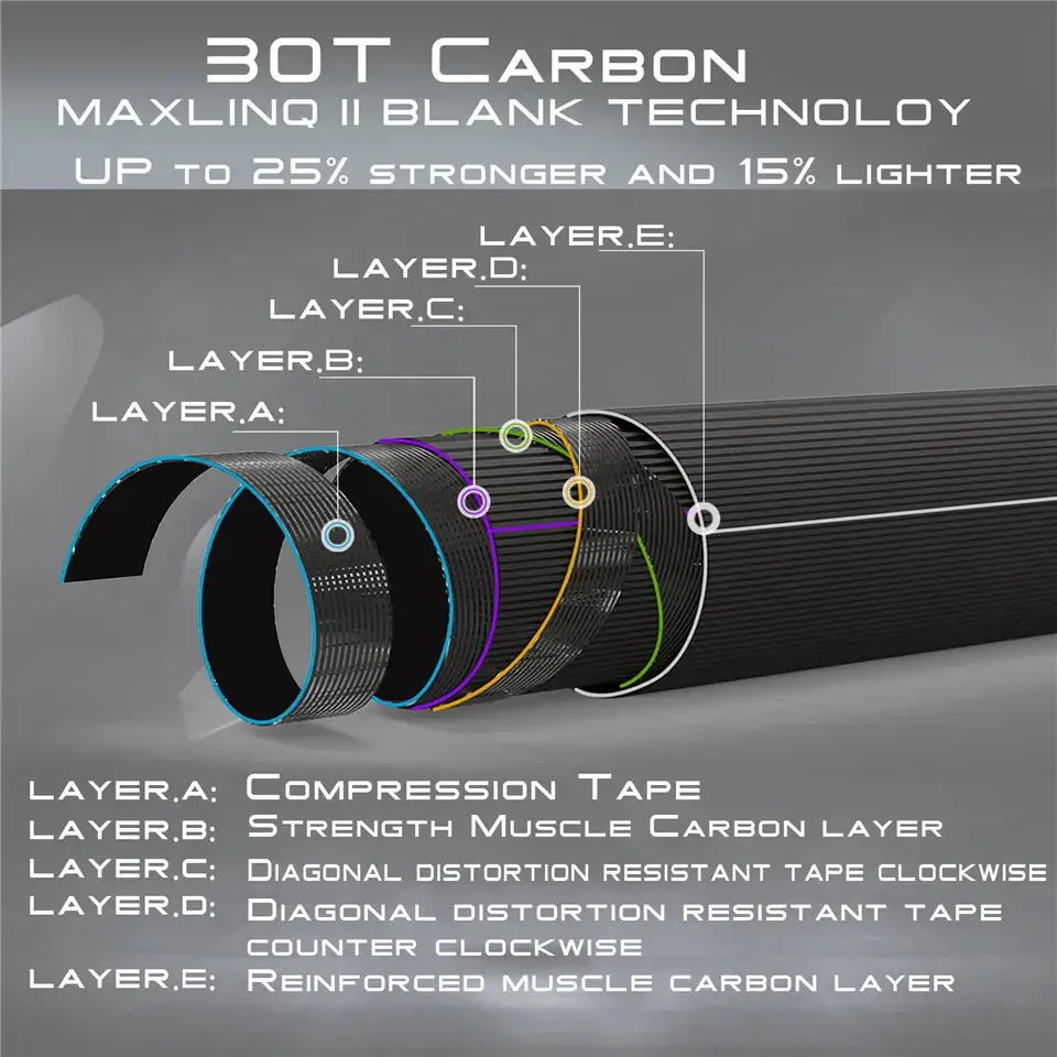 Varilla para viajero de 7 piezas, 9 pies y 5 pesos; Hecha 100% de fibra de carbono IM10 y con un agarre de corcho de grado AAA, esta varilla no solo es liviana sino también resistente y duradera.