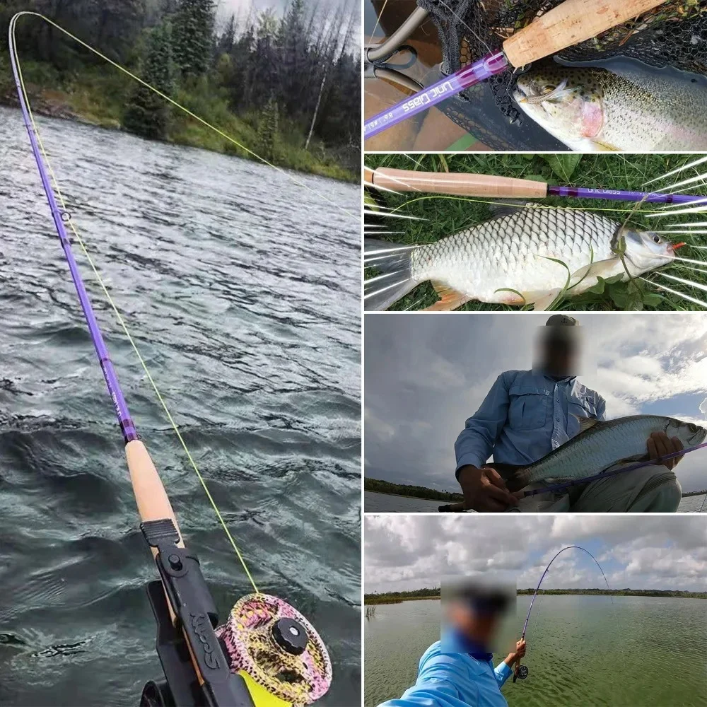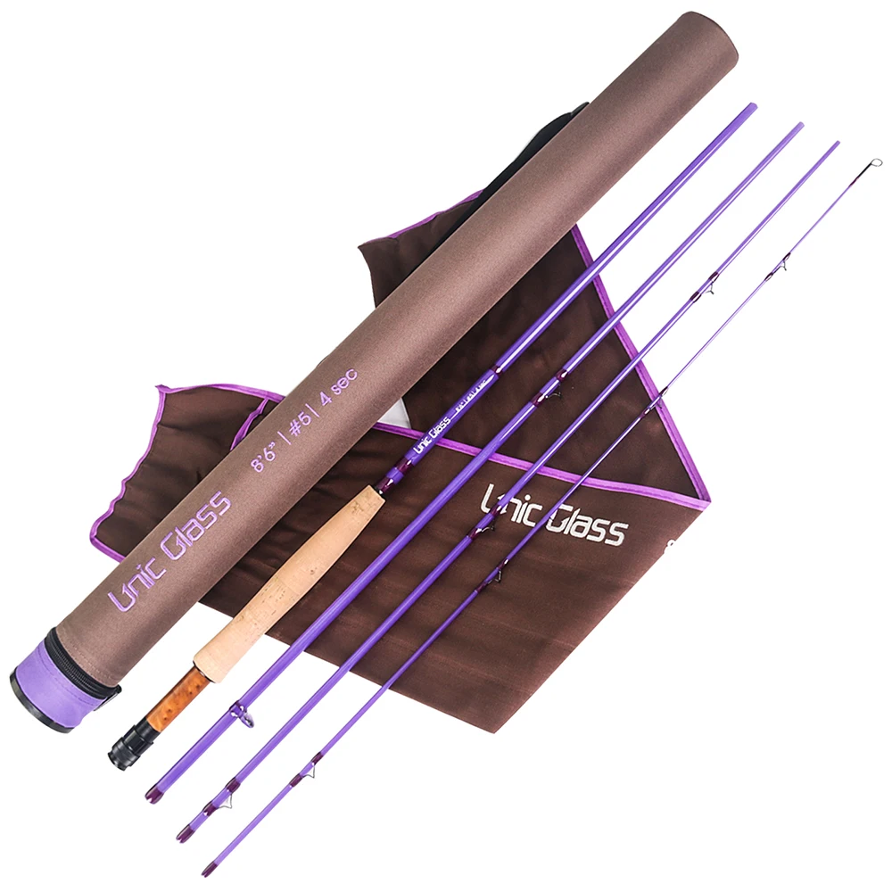 ---Esta varilla para mosca de fibra de vidrio UNIC - color púrpura en blanco - le brindará una nueva experiencia de lanzamiento, todas las envolturas son sólidas y apretadas, las férulas y el asiento real están en excelentes condiciones, este rango de peso de varilla de acción rápida de 2,6 oz a 4 oz