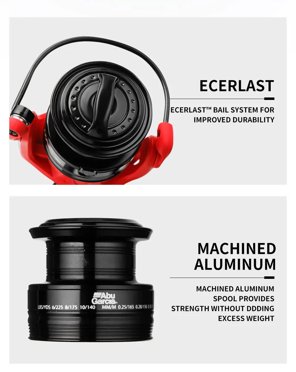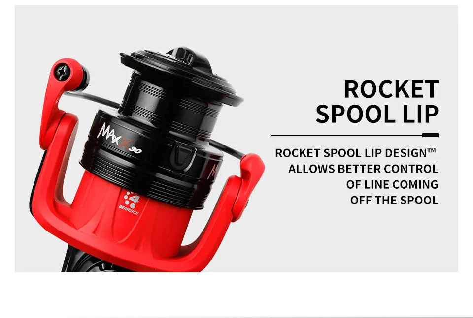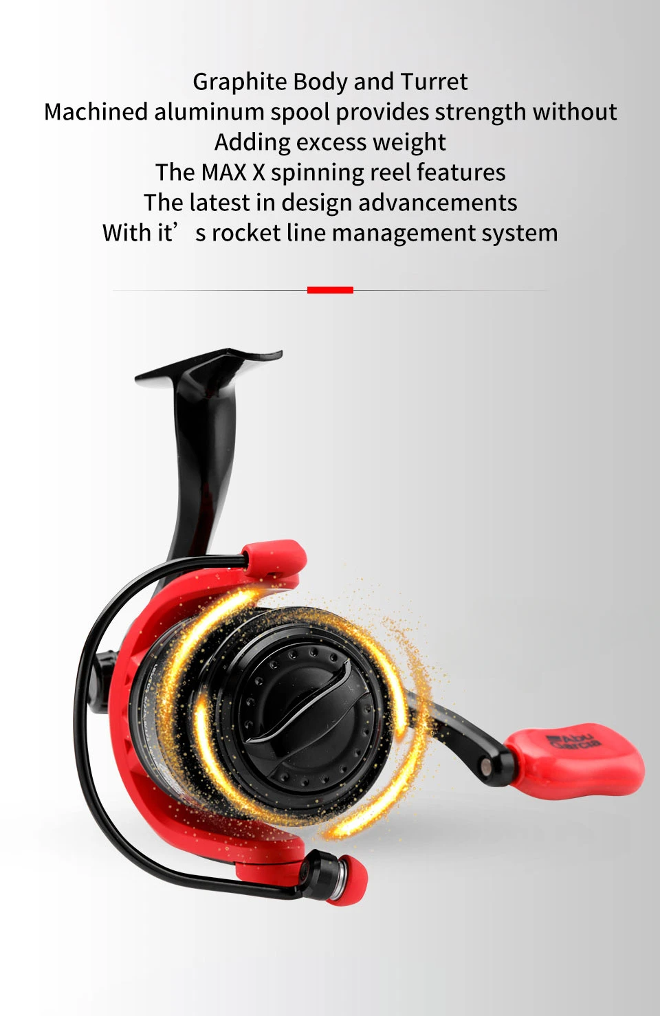 Max X 5 :-Capacidad de línea (YD/lb) - 100/4/Arrastre máximo-6.4lb/Relación de engranaje-5,2: 1/Peso del carrete-6,2 oz
