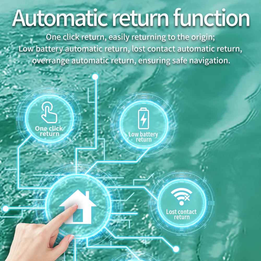 Equipado con un avanzado sistema de posicionamiento GPS/Beidou, el barco admite 4 áreas de pesca y hasta 24 puntos de referencia almacenados, lo que permite una colocación de cebo repetible y altamente precisa.Múltiples funciones inteligentes de regreso a casa, que incluyen retorno de GPS con una sola tecla, retorno de batería baja, retorno de pérdida de señal y retorno fuera de rango, brindan mayor seguridad y tranquilidad durante el uso.