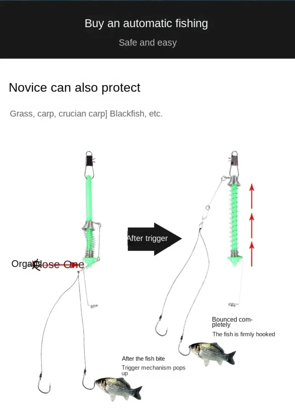 Automatic Fishing Hook Trigger Fishing Pole Fixing Spring Fishhook Bait Catch Ejection Catapult Fish Tool Fishing Accessories