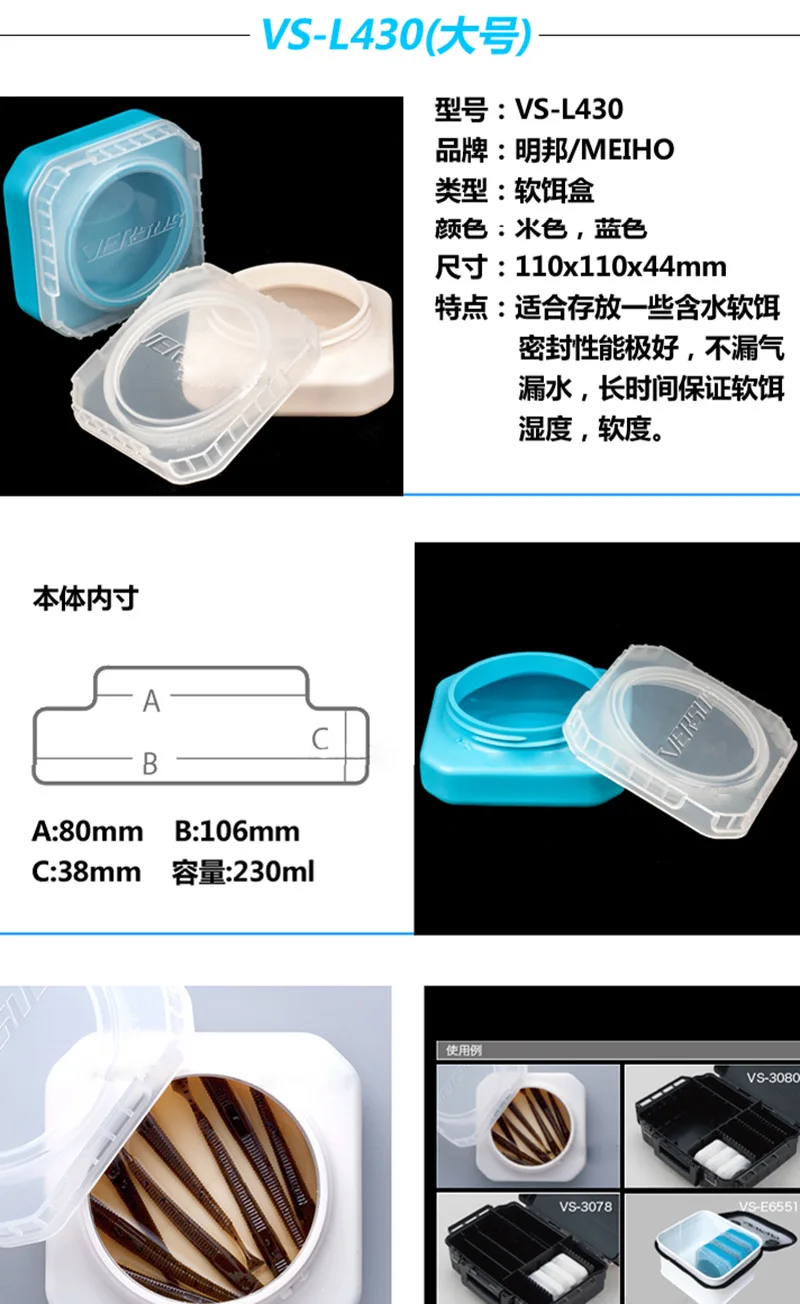 Paquete líquido Meiho VS-L415/425/430 caja de señuelos de pesca portátil de origen japonés para remojar y almacenar cebo equipo de pesca