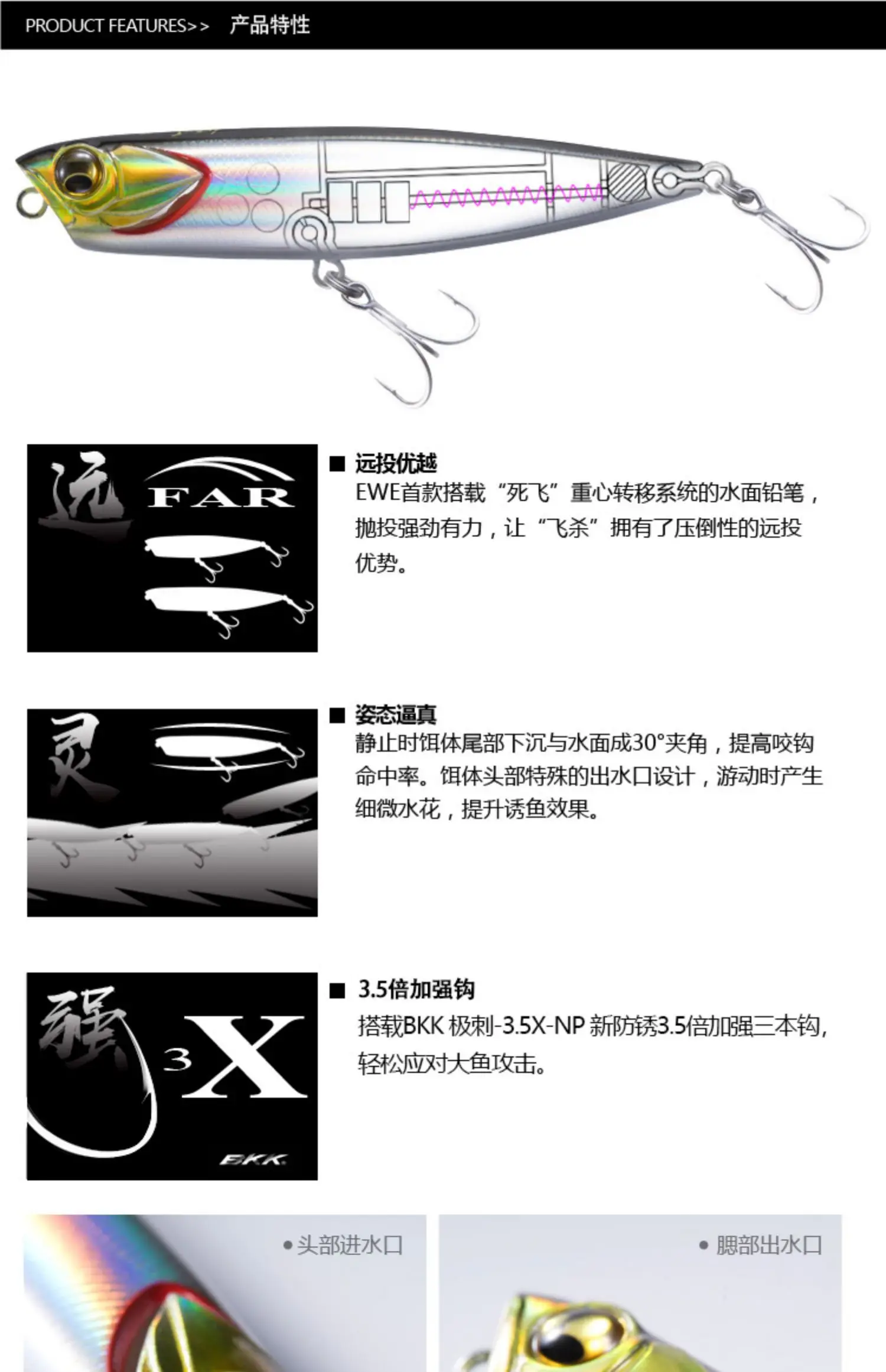 Meixia EWE Fly To Kill-lápiz de agua flotante, cebo Luya, sistema de agua para perros con palabras, cebo para peces de lubina con boca de lanzamiento lejano