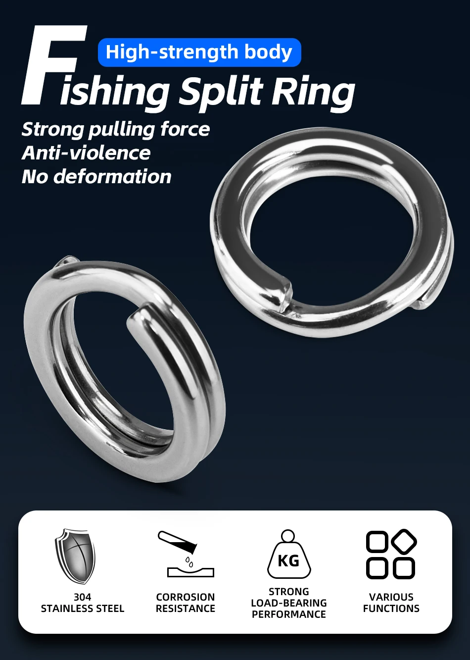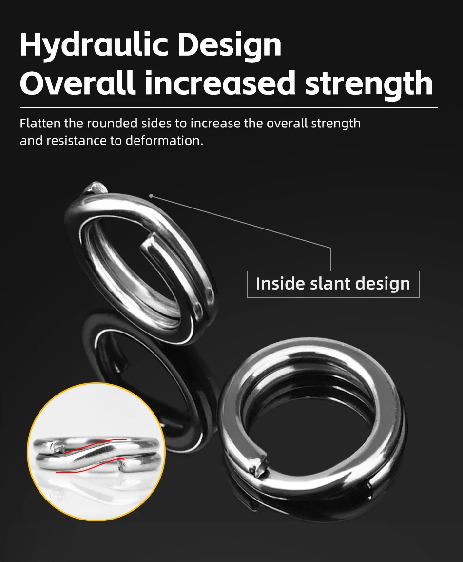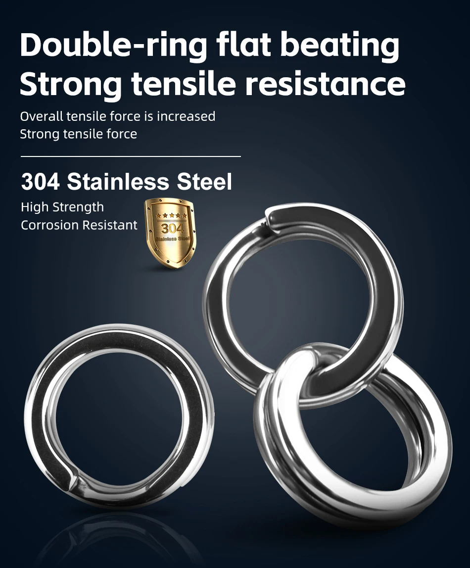 Fabricados con acero inoxidable duradero, estos anillos divididos garantizan longevidad y resistencia a la corrosión, ideales para la pesca en agua salada.