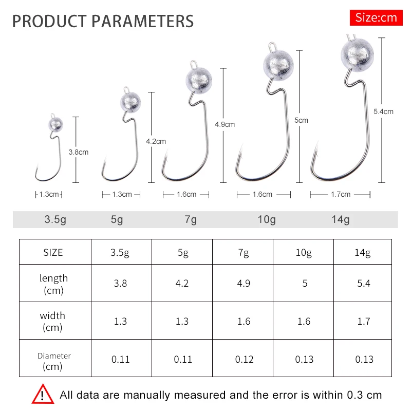 ¡Excelentes cabezas plomadas de 7g! Los anzuelos son afilados y la calidad es excelente. El pedido llegó justo a tiempo. Muy satisfecho con la compra