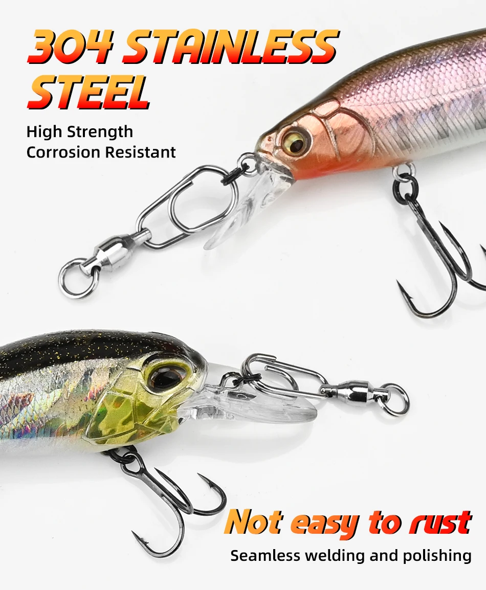 Estos conectores son ideales para varios señuelos de pesca, lo que los convierte en una adición versátil a su caja de aparejos.