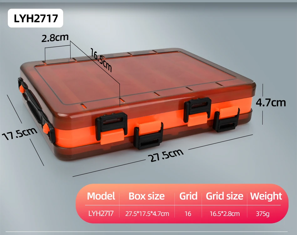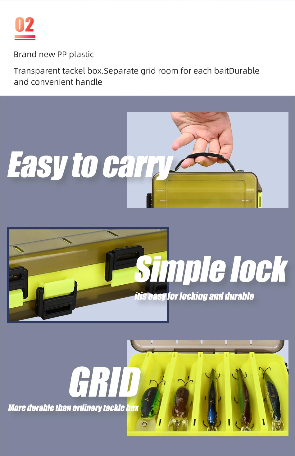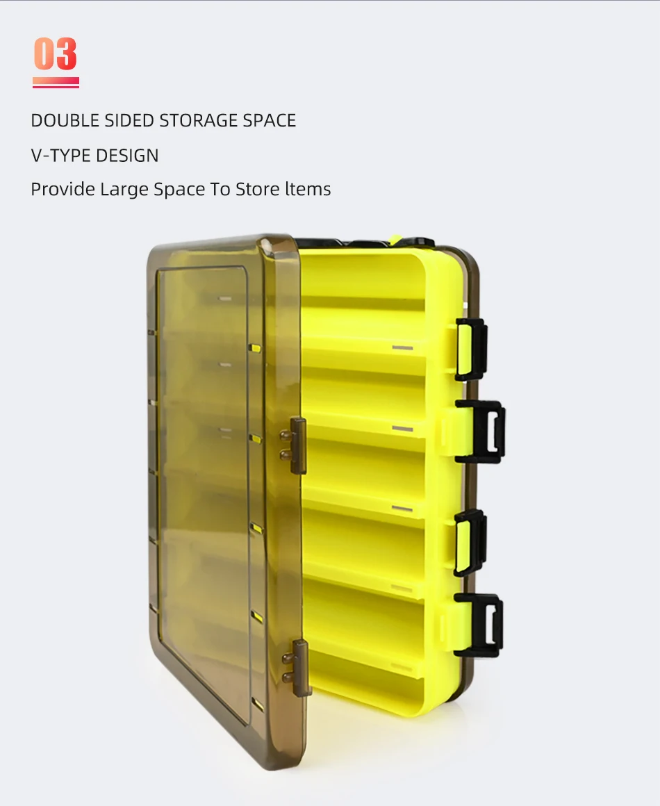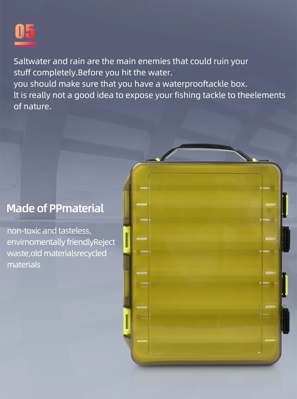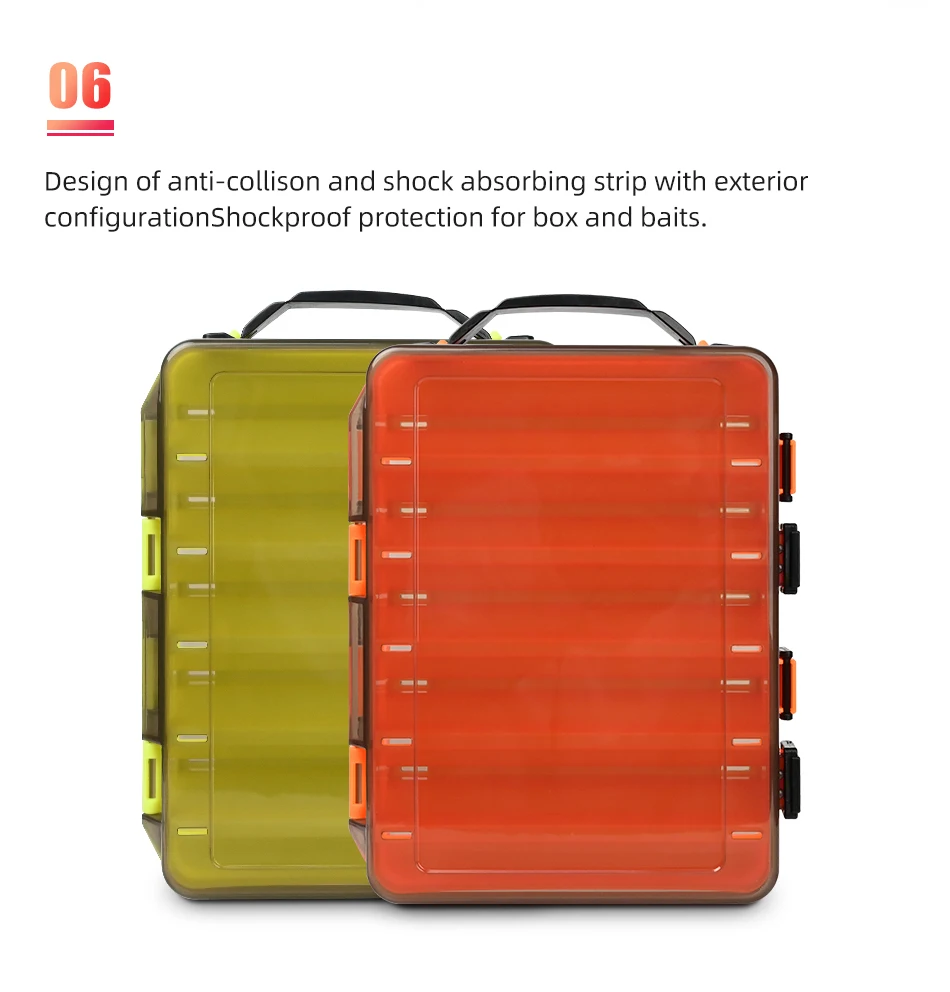 Estructura robusta-la caja de aparejos de pesca Kingdom está hecha de un marco grueso y resistente, que puede proporcionar a los pescadores una solución duradera de almacenamiento y clasificación para resolver los problemas de cebo duro, plástico, acabado de aparejos de pesca y herramientas. Nuestros pestillos moldeados resistentes mantienen las cosas seguras.