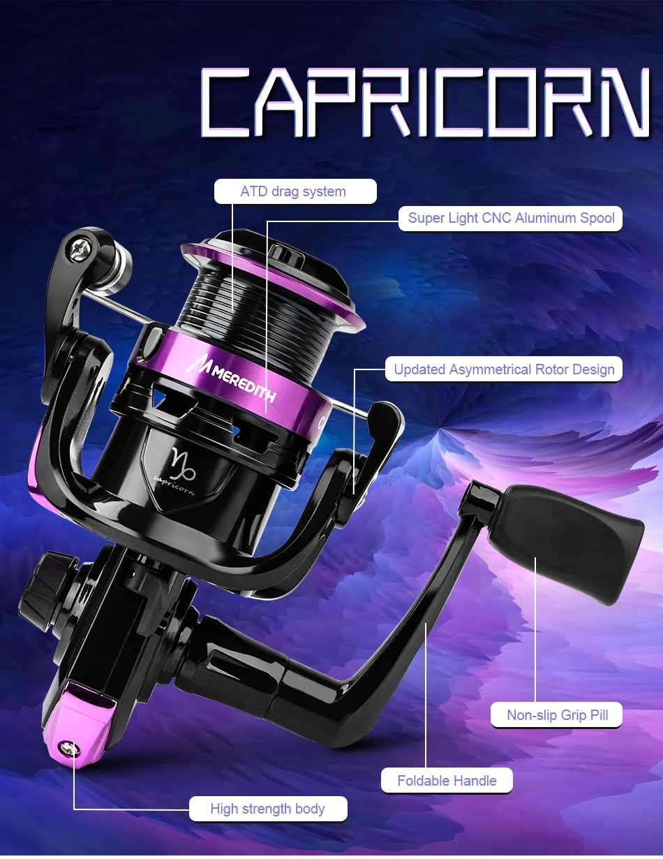 3.MEREDITH CAPRICORN series has a unique protection water resistant design for its spool, body, and rotor.