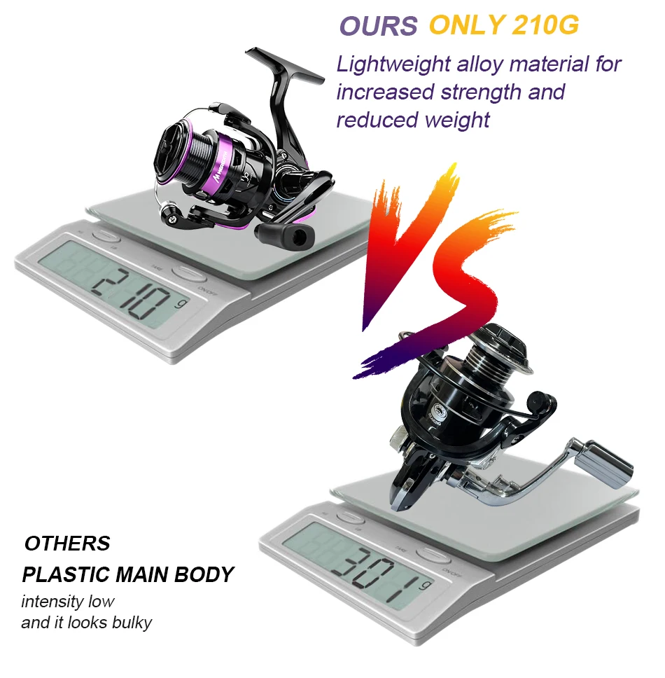 6.Ultra-thin Body Design and CNC Machined Aluminum Spool is ideal for long time fishing.
