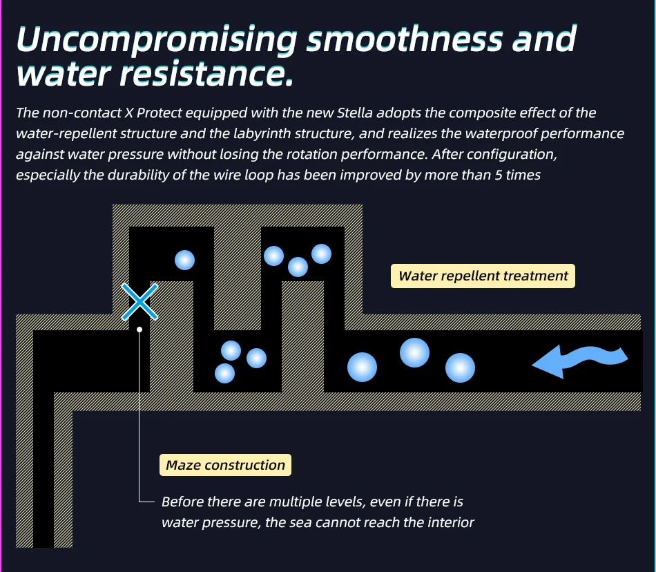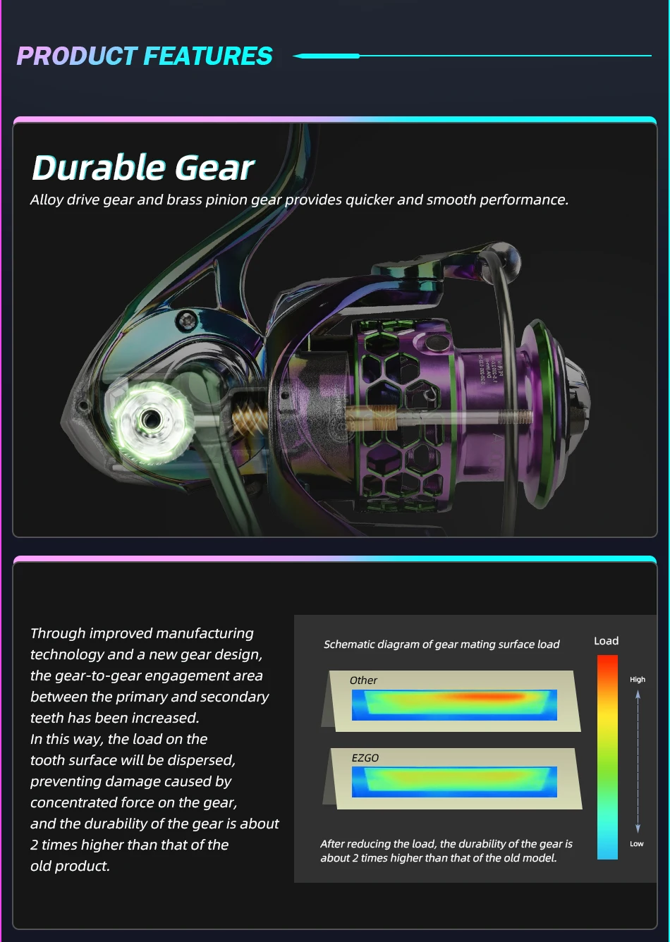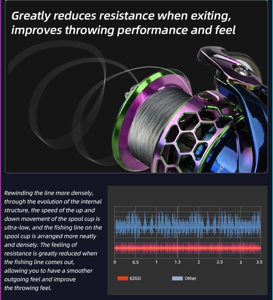 3. La serie EZGO tiene un diseño único de protección resistente al agua para su carrete, cuerpo y rotor.