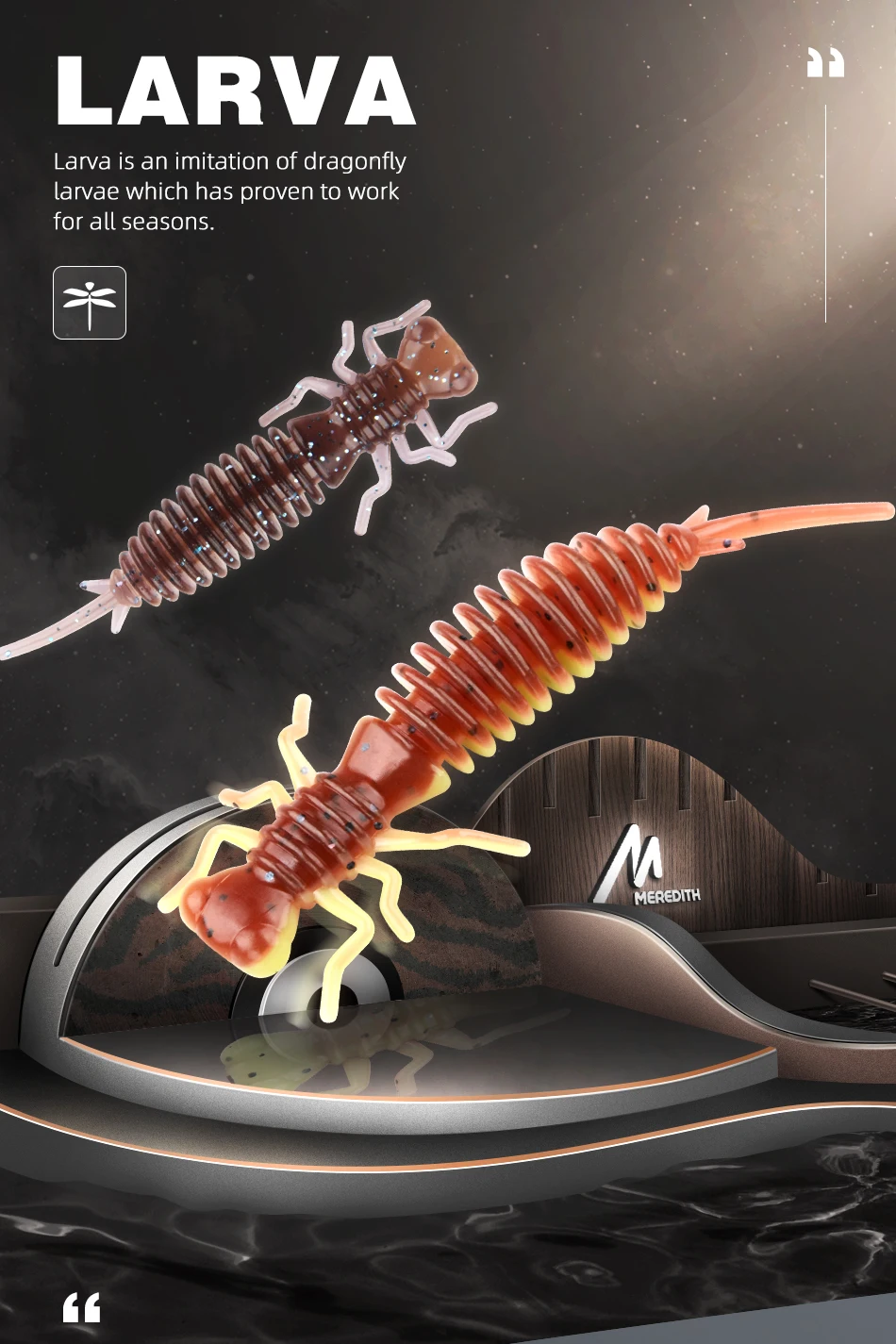 La Larva es una imitación de larvas de libélula que ha probado funcionar durante todas las estaciones.