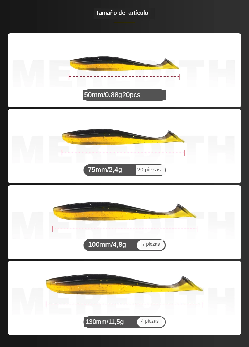 Longitud: 130mm (5,11 ") Peso: 11,5g (0,40 oz) Paquete: 4 unids/lote