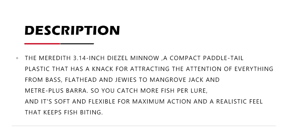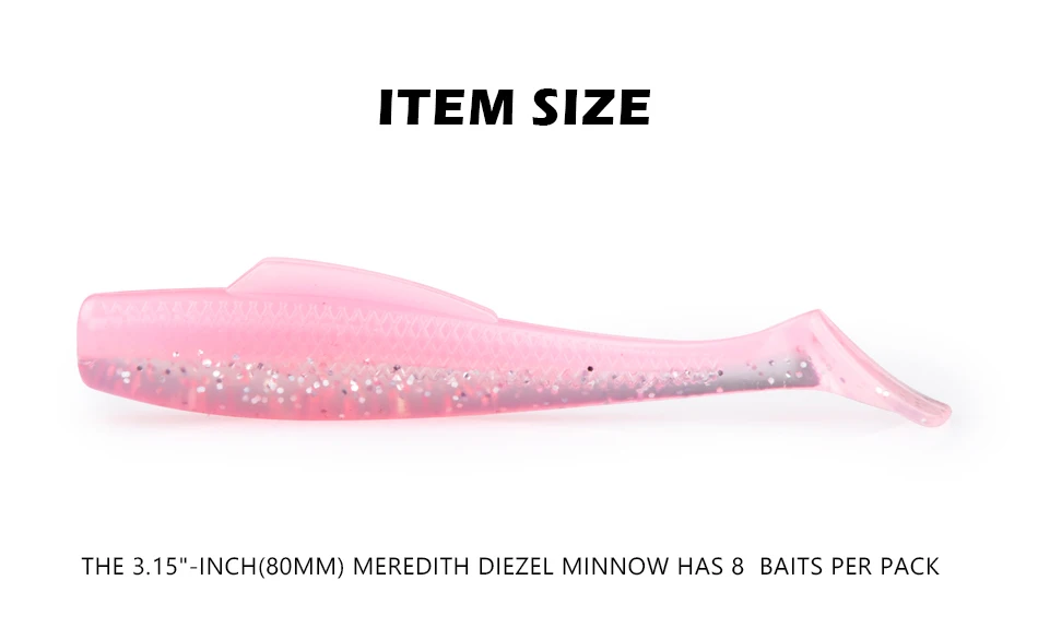 MEREDITH DieZel Minnow Señuelos de Pesca 80mm 5,9g cebos blandos de pesca 3,15 "8 unids/lote silicona Artificial natación plástico señuelo Wobblers