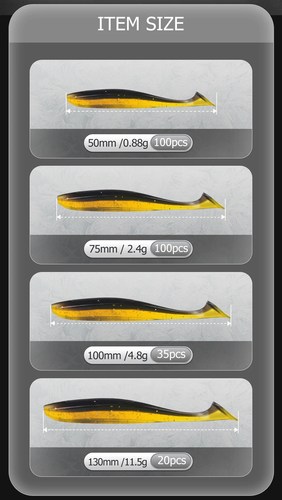 MEREDITH Easy Shiner-Cebo Artificial de silicona suave, 50mm, 75mm, 100mm, 130mm, doble Color, señuelos para carpa