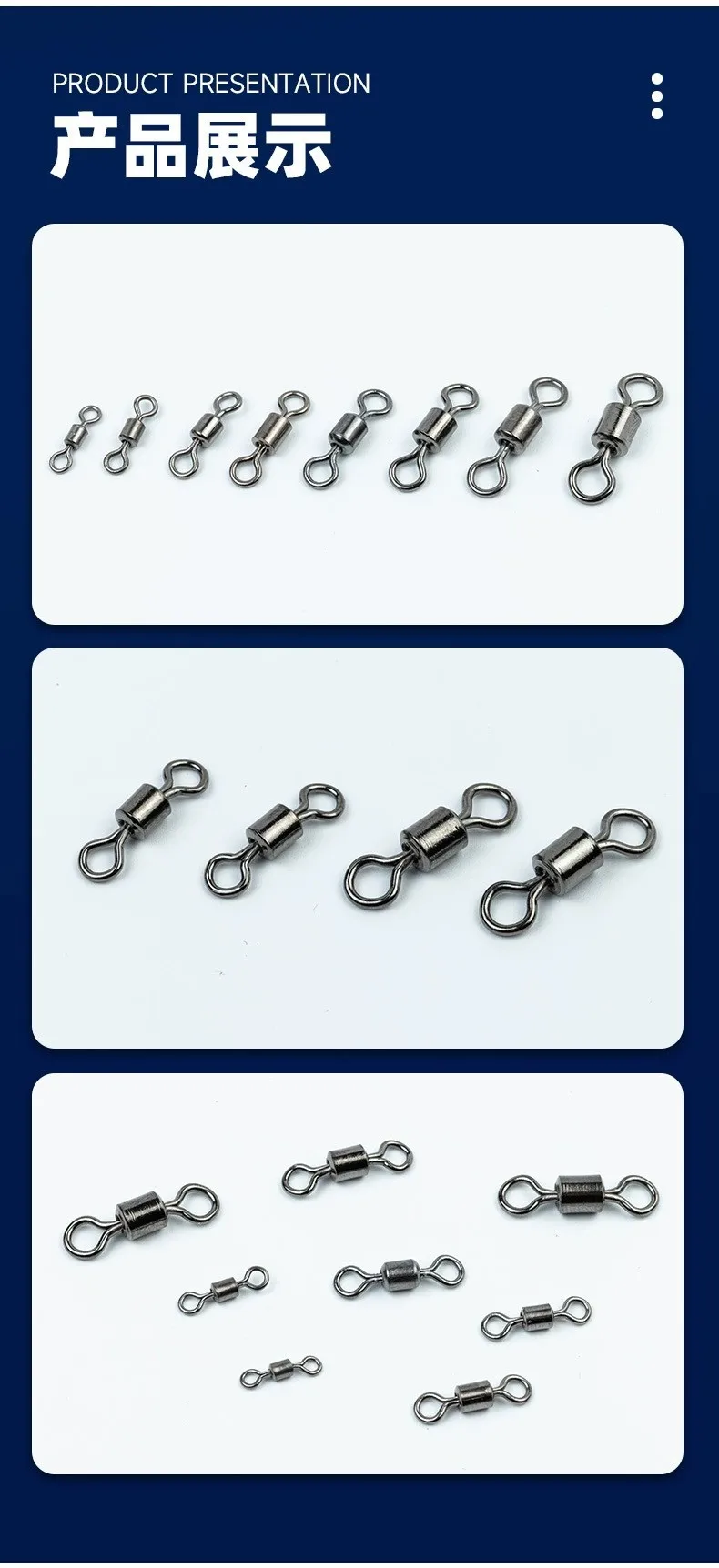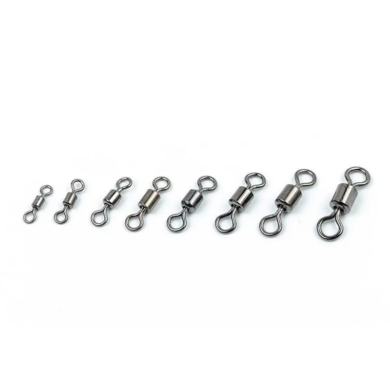 MEREDITH-giratorios de pesca con rodamiento de bolas, 50 unids/lote, con broches de seguridad, anillos sólidos, giratorios para accesorios de pesca de carpa