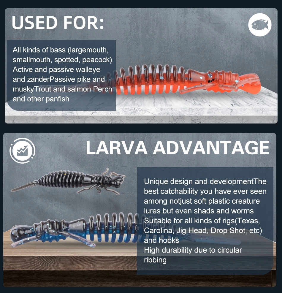 La larva es una imitación de larvas de libélula que ha demostrado funcionar en todas las estaciones.