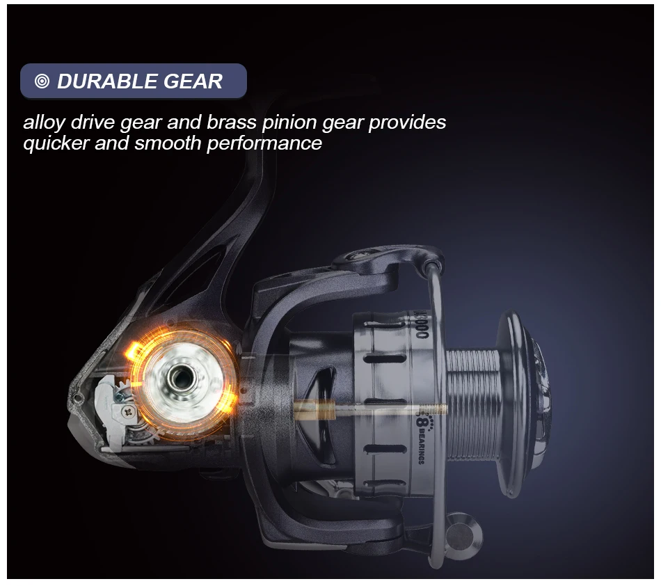 6. Diseño de cuerpo ultrafino y carrete de aluminio mecanizado CNC ideal para pesca de larga duración.