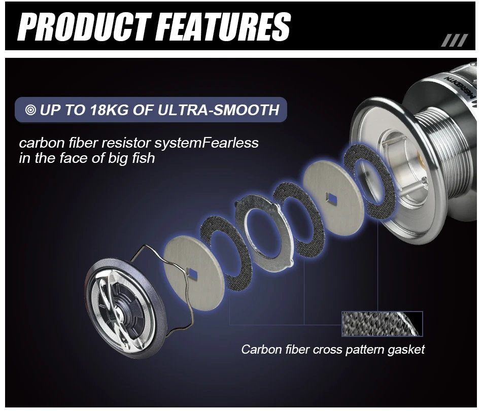 2. Hasta 39,5 libras/18kg de arrastre de fibra de carbono de triple disco suave y fiable